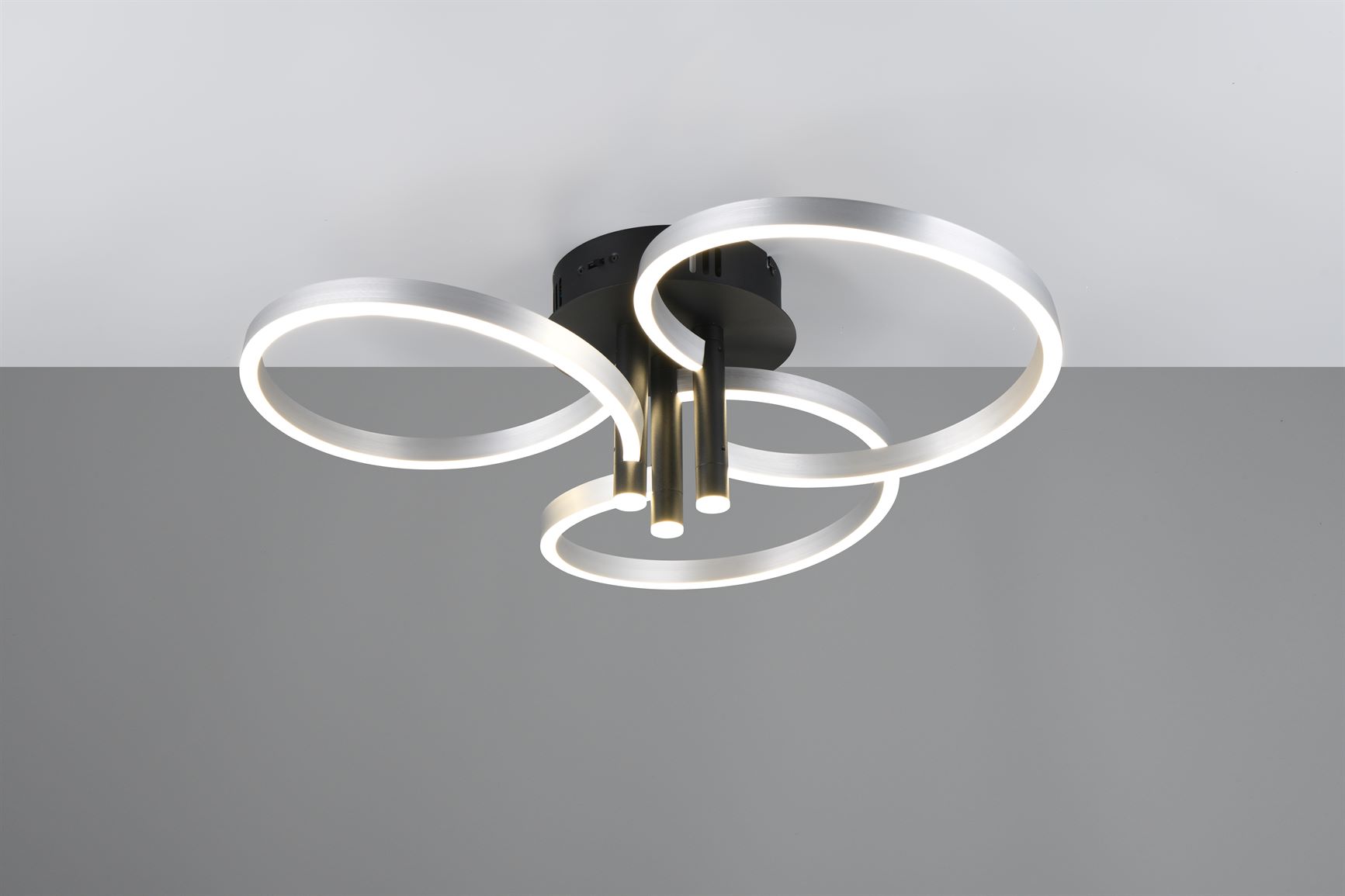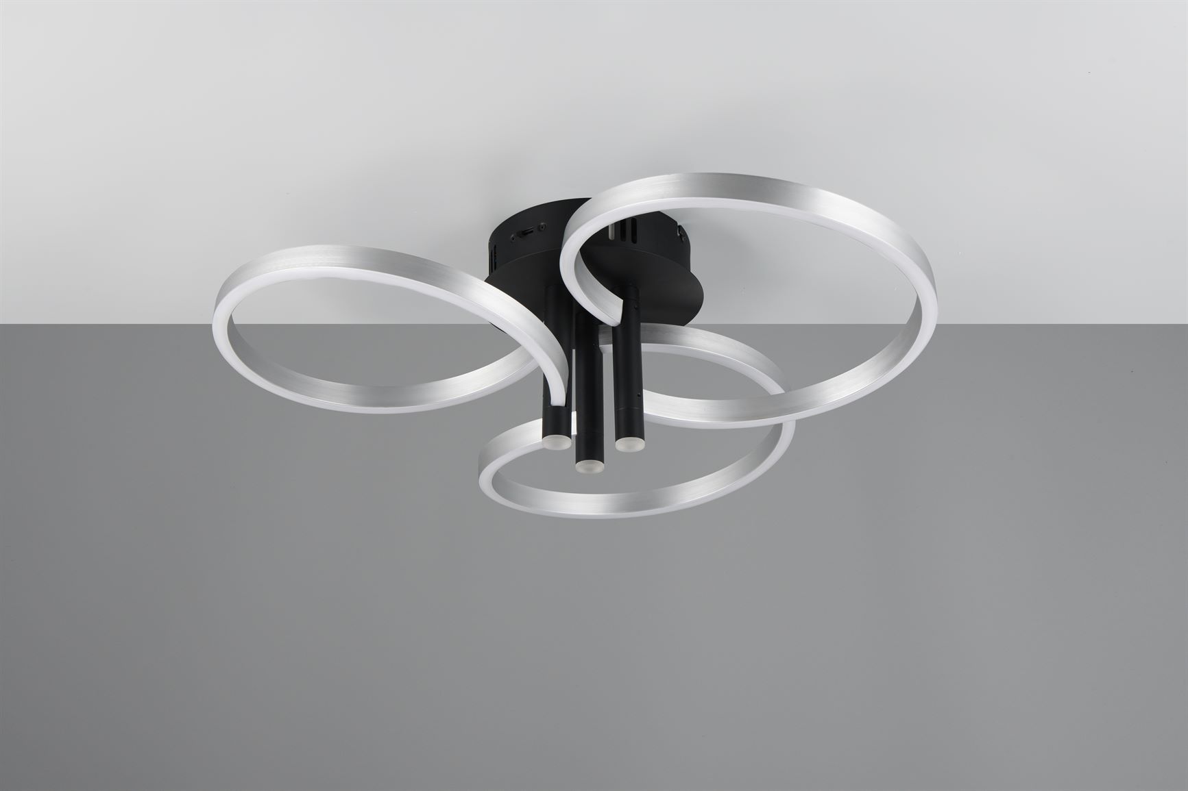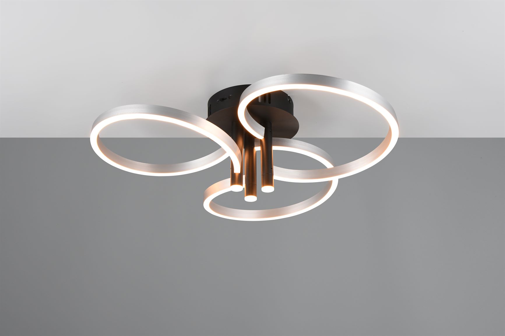 Το αποκορύφωμα του φωτιστικού οροφής CARUSO είναι ο μοναδικός σχεδιασμός του. Τρεις κομψά πλεγμένοι δακτύλιοι δημιουργούν μια δυναμική αλλά αρμονική εμφάνιση που τραβάει αμέσως τα βλέμματα. Ωστόσο, το φωτιστικό οροφής δεν είναι μόνο οπτικά ελκυστικό, αλλά και τεχνικά εντυπωσιακό. Η φωτεινότητα και το χρώμα του φωτός μπορούν να ρυθμιστούν σταδιακά χρησιμοποιώντας έναν συμβατικό διακόπτη φωτός, έτσι ώστε ο φωτισμός να μπορεί να προσαρμοστεί ευέλικτα στις ανάγκες και την επιθυμητή διάθεσή σας. Είτε έντονο φως για συγκεντρωμένη εργασία είτε χαμηλό φως για μια ζεστή ατμόσφαιρα – με το CARUSO έχετε πάντα τον πλήρη έλεγχο του φωτός. Ο συνδυασμός του μαύρου ματ και των αποχρώσεων αλουμινίου δίνει στο φως ένα μοντέρνο αλλά διαχρονικό στυλ που μπορεί να ενσωματωθεί αβίαστα σε διάφορες έννοιες επίπλων. Το φωτιστικό διαθέτει επίσης σύγχρονη τεχνολογία LED, η οποία χαρακτηρίζεται από υψηλή ποιότητα φωτισμού και ενεργειακή απόδοση. Σε σύγκριση με τις συμβατικές πηγές φωτός αλογόνου, μπορεί να εξοικονομηθεί έως και 80% του ενεργειακού κόστους. Οι πηγές φωτός LED έχουν επίσης μεγάλη διάρκεια ζωής, παράγουν λιγότερη θερμότητα και προστατεύουν το περιβάλλον.