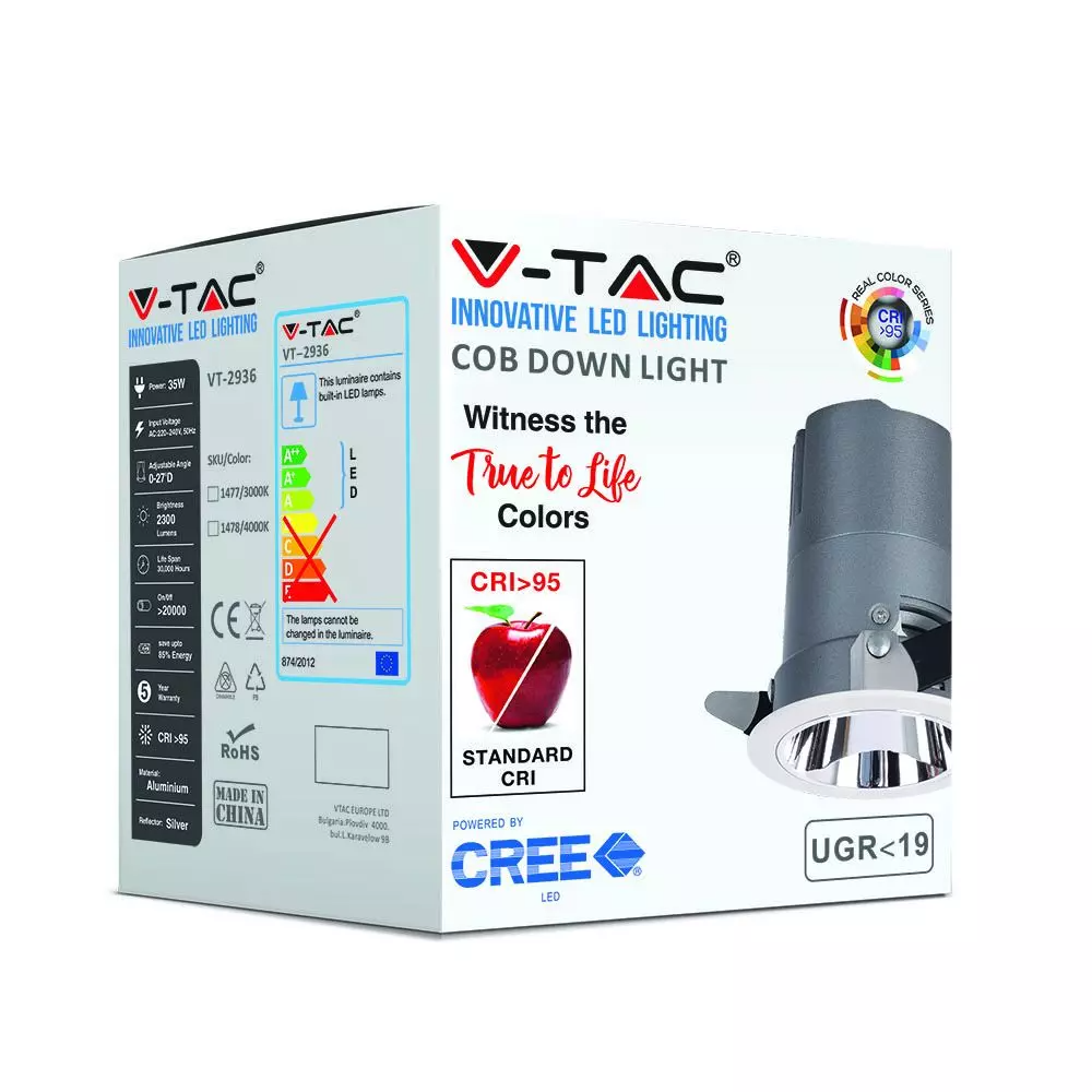 LED φωτιστικό οροφής χωνευτό στρογγυλό Cree LED 35W 3000K Θερμό λευκό ρυθμιζόμενο CRI>95 V-TAC – 1477