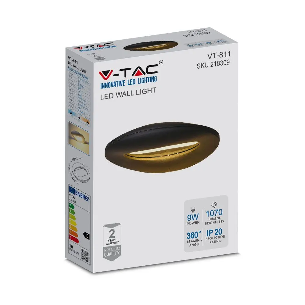 LED Φωτιστικό Τοίχου 9W V-TAC Μαύρο Θερμό Λευκό 3000Κ – 218309