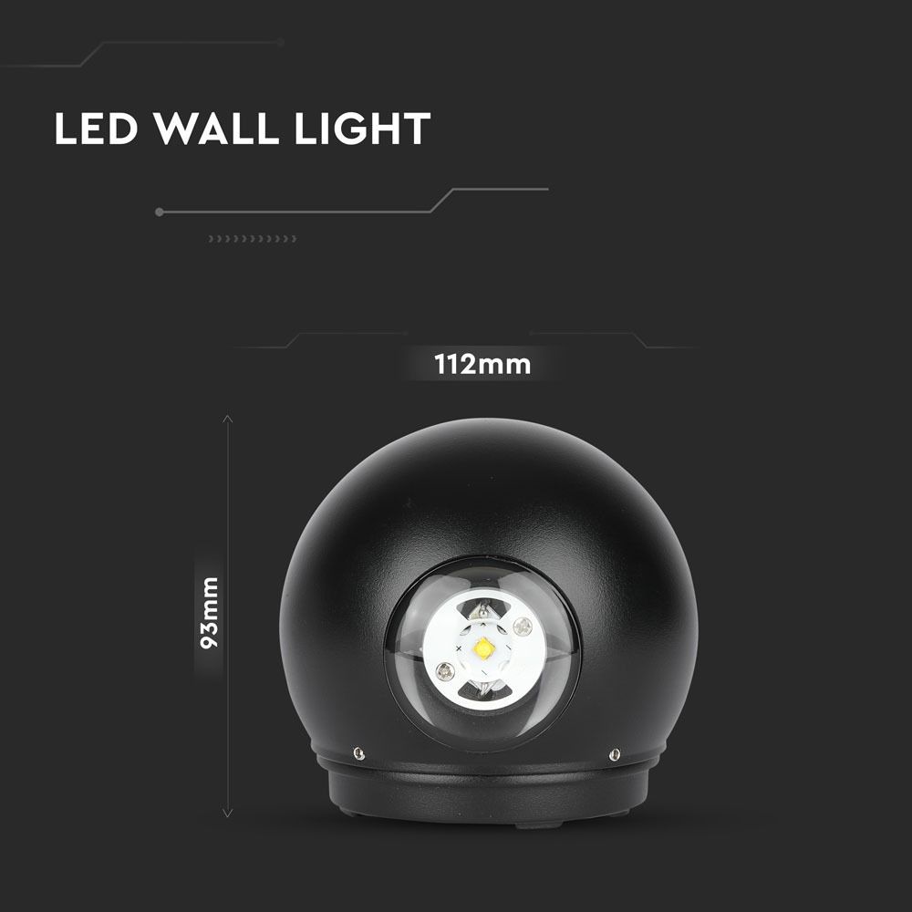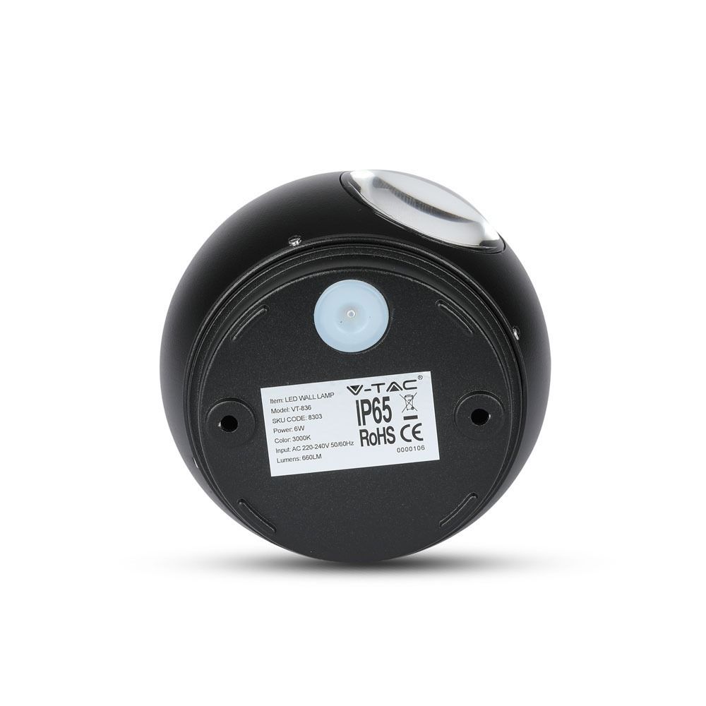 LED Φωτιστικό Τοίχου Στρογγυλό 6W V-TAC Μαύρο Αδιάβροχο IP65 SMD Θερμό Λευκό 3000Κ – 8303