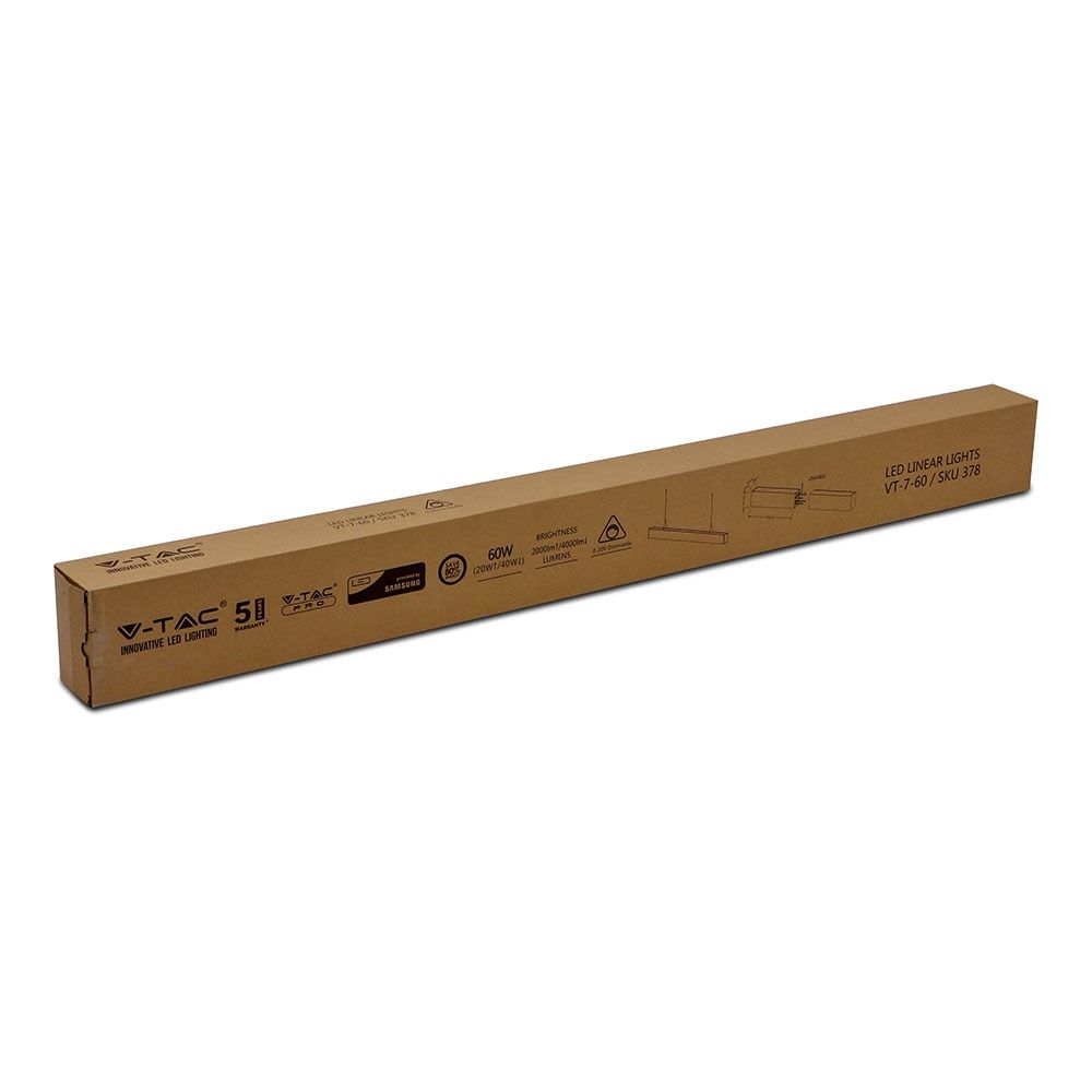 LED Γραμμικό Κρεμαστό Φωτιστικό 120cm Ασημί Up Down Linkable 60W V-TAC PRO Samsung Chip 6000lm 120° Φυσικό Λευκό 4000K – 378
