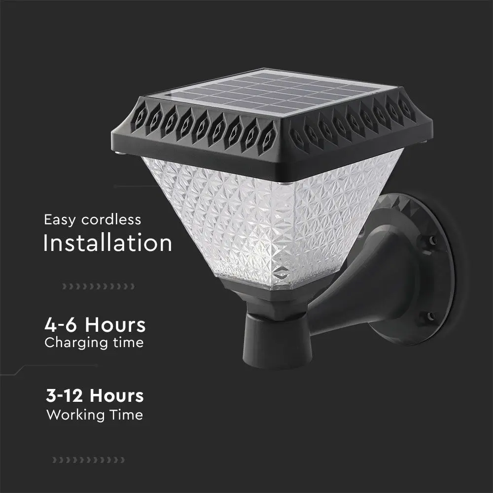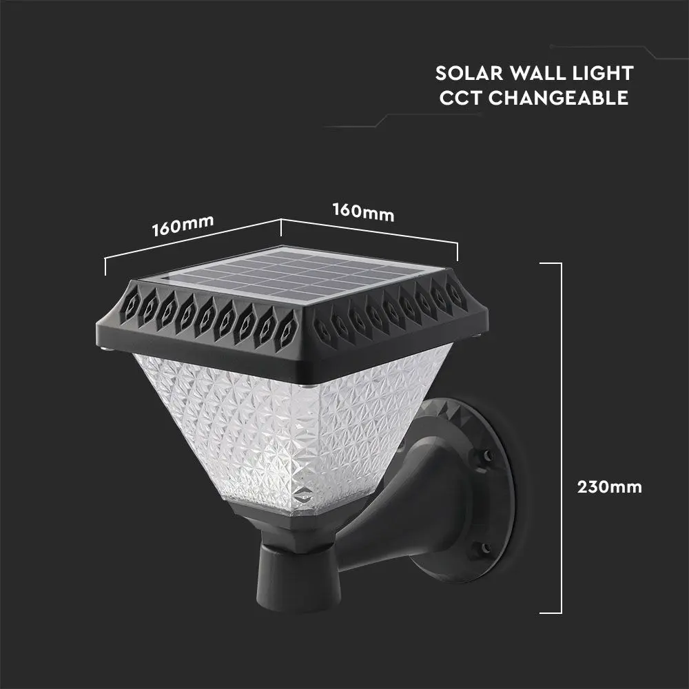 LED Ηλιακό Φαναράκι Τοίχου με RF Control V-TAC IP44 Μαύρο Σώμα CCT – 93578