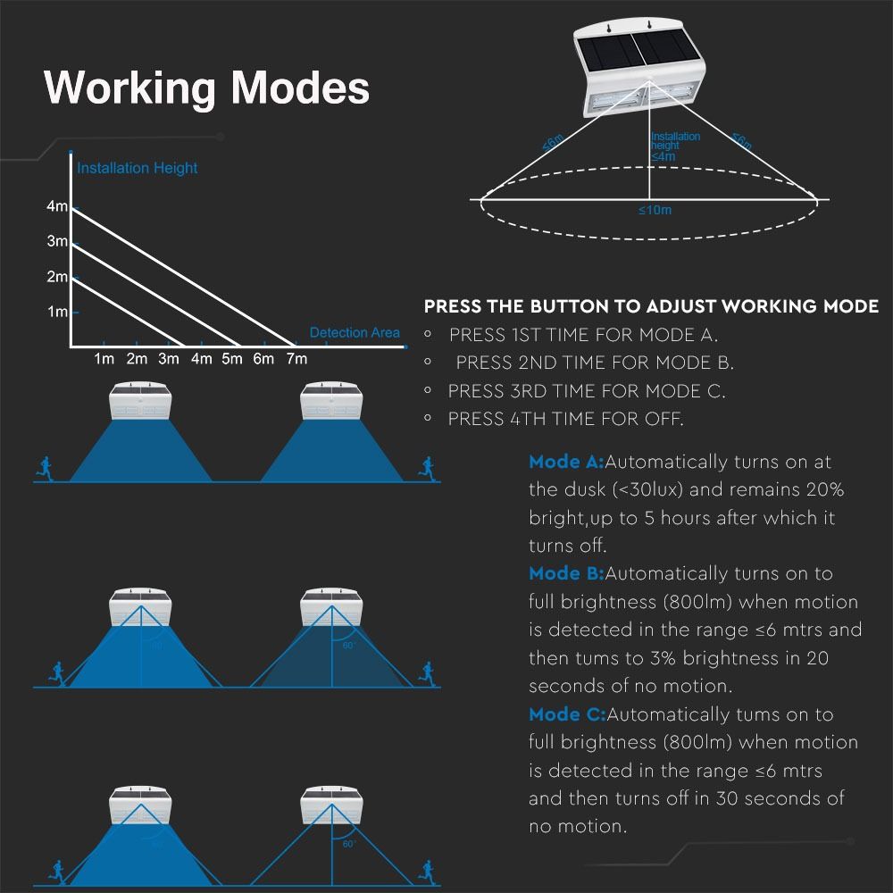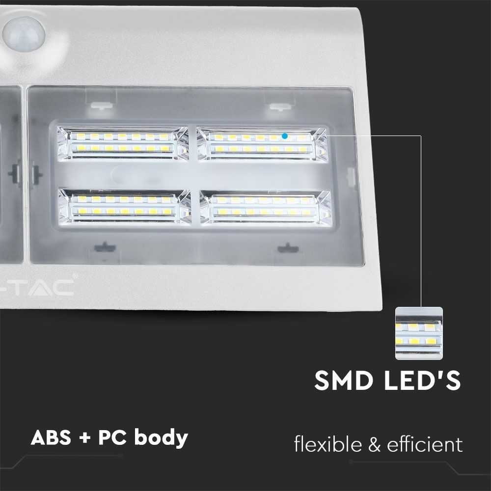 LED Ηλιακό Φωτιστικό 6.8W V-TAC με Αισθητήρα Αδιάβροχο IP65 Λευκό Πλαστικό Φυσικό Λευκό 4000K – 8278
