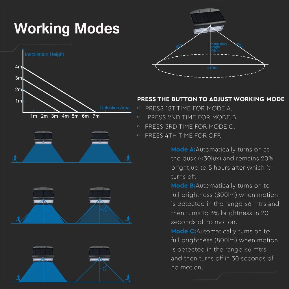 LED Ηλιακό Φωτιστικό 6.8W V-TAC με Αισθητήρα Αδιάβροχο IP65 Μαύρο Πλαστικό Φυσικό Λευκό 4000K – 8279