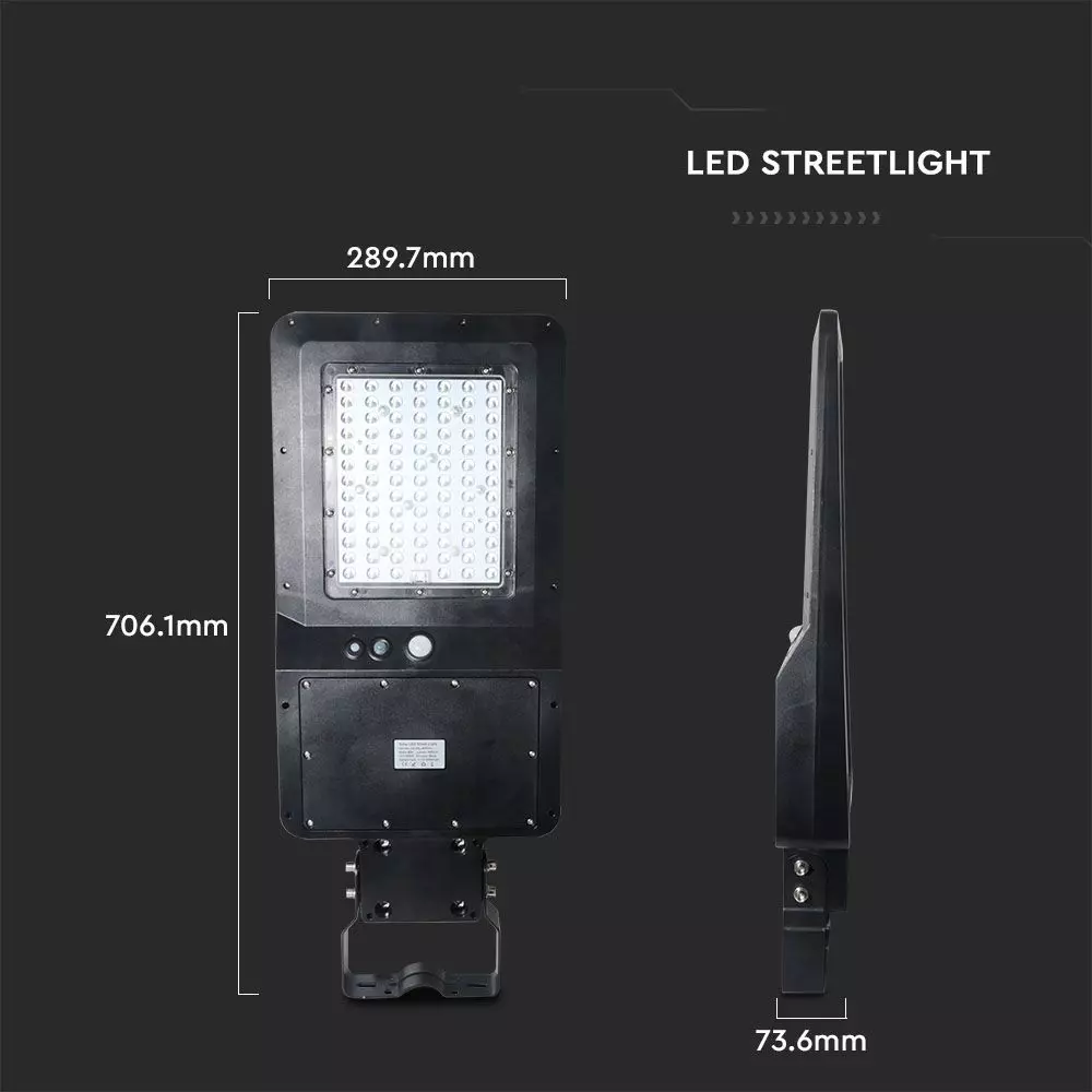 LED ηλιακό φωτιστικό δρόμου 40W (120lm/w) Φυσικό λευκό 4000K μαύρο σώμα V-TAC – 40