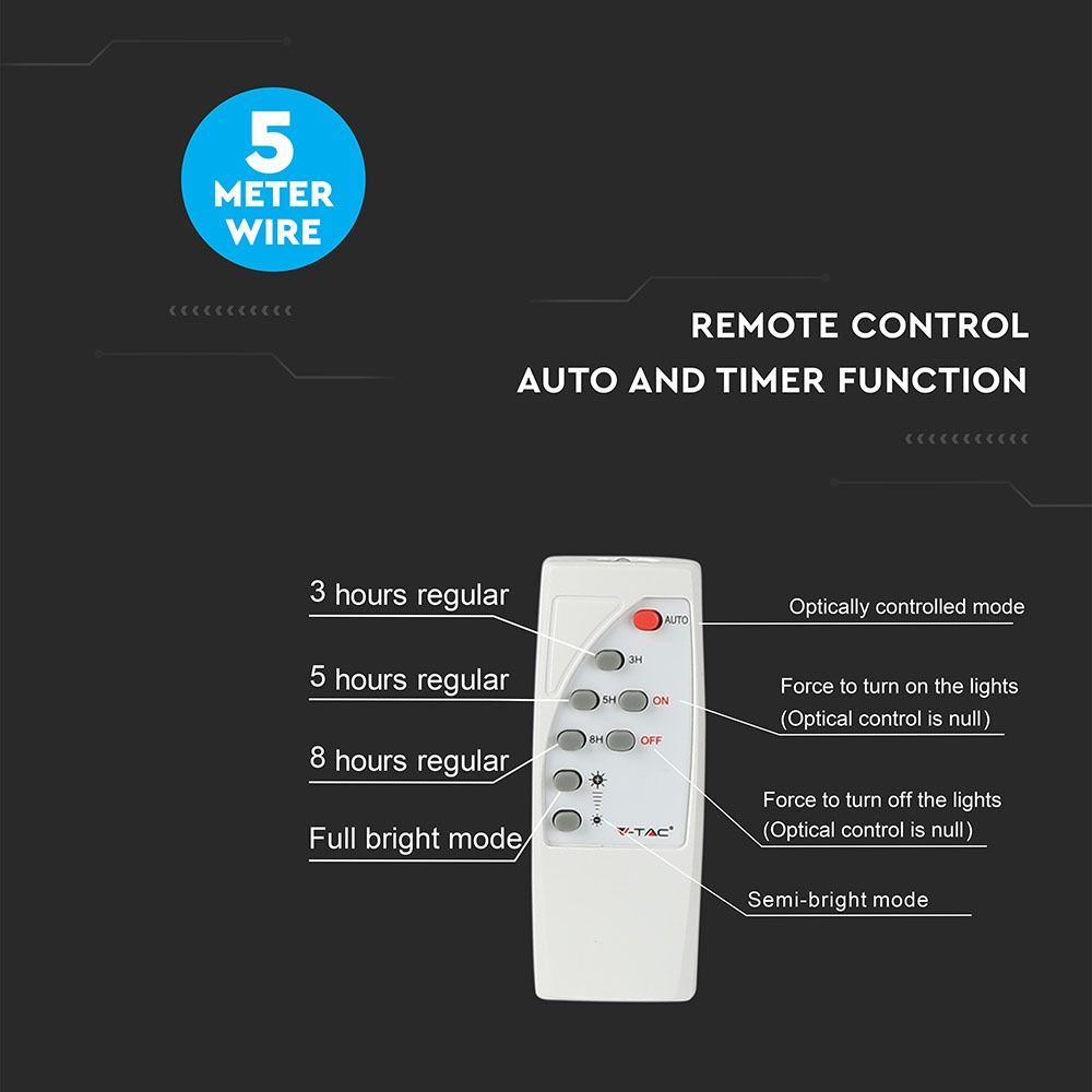 LED ηλιακός προβολέας 12W Ψυχρό λευκό 6400K Μαύρο σώμα V-TAC – 94006