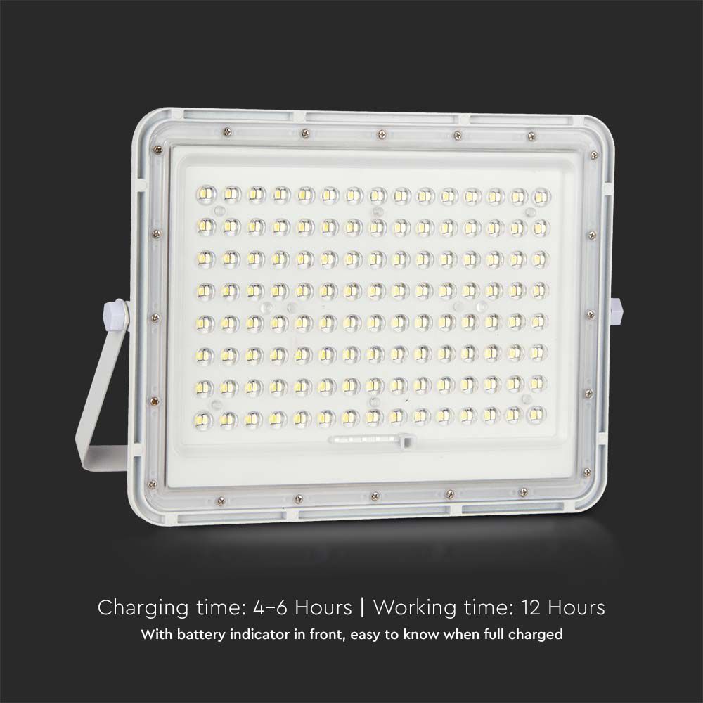 Το V- Tac VT-180W είναι ένας προβολέας LED ισχύος 20W με τεχνολογία SMD LED , λευκό σώμα από αλουμίνιο και διαφανές κάλυμμα. Με γωνία δέσμης 120° και φωτεινή ροή 1800 lm . Χάρη στον βαθμό προστασίας IP65 , είναι κατάλληλο για χρήση σε εξωτερικούς χώρους, ακόμη και σε παρατεταμένη βροχή. Εξοπλισμένο με ηλιακό πάνελ και μπαταρία 16000mAh, εγγυάται αυτονομία 12 ωρώνμε χρόνο φόρτισης 4-6 ώρες. Ο πανελ είναι ανεξάρτητο από τον προβολεα, στον οποίο συνδέεται με το καλώδιο μήκους 3 μέτρων που περιλαμβάνεται στη συσκευασία. Χρησιμοποιώντας το τηλεχειριστήριο, μπορείτε να ενεργοποιήσετε και να απενεργοποιήσετε τη συσκευή, να ρυθμίσετε την ένταση φωτός της, να ενεργοποιήσετε τη λειτουργία αυτόματης ενεργοποίησης/απενεργοποίησης και να ρυθμίσετε ένα χρονόμετρο απενεργοποίησης στις 3/5/8 ώρες.
