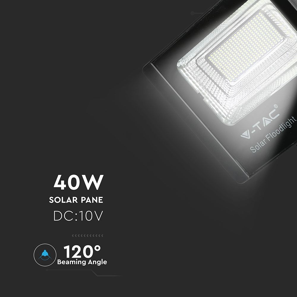 LED ηλιακός προβολέας 40W Ψυχρό λευκό 6400K Μαύρο σώμα V-TAC – 94026