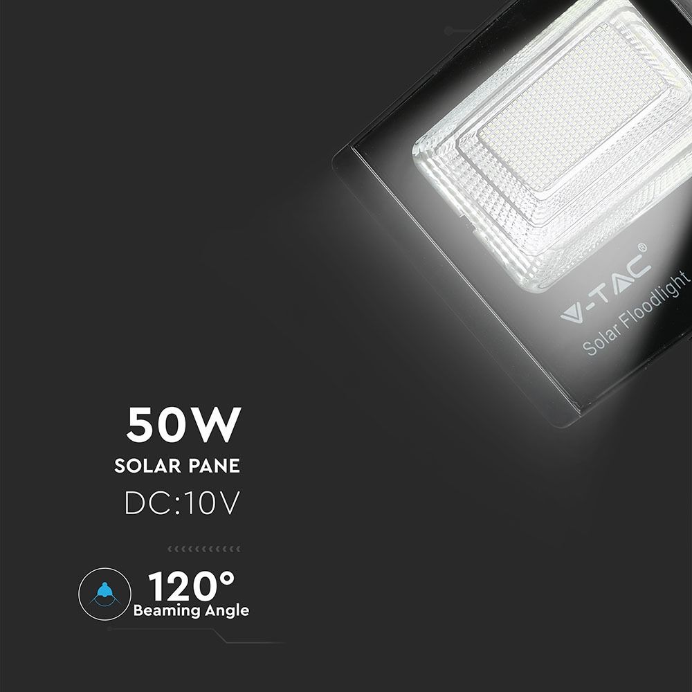 LED ηλιακός προβολέας 50W Ψυχρό λευκό 6400K Μαύρο σώμα V-TAC – 94027
