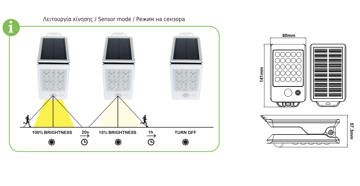 LED Ηλιακός Προβολέας Τοίχου με Ανιχνευτή Κίνησης 2W 200lm 4000K IP65 120° Λευκός ACA – ELISA2W