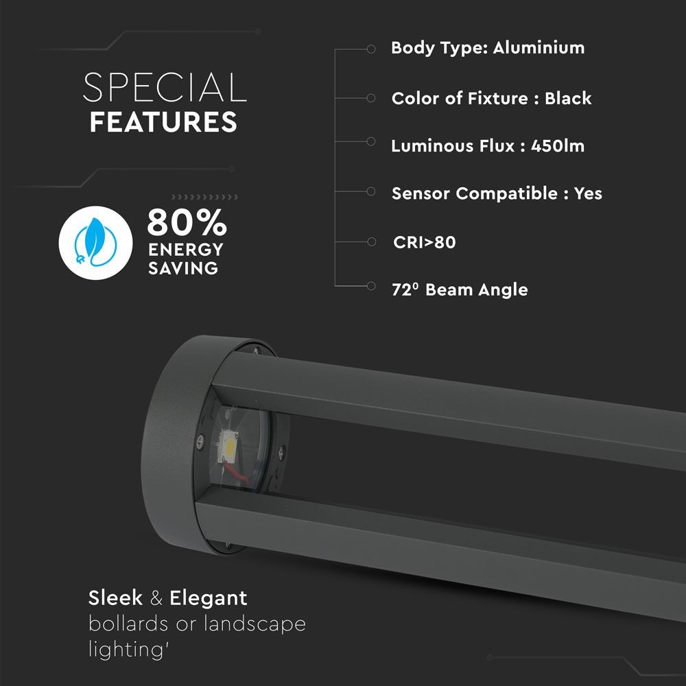 LED Κολονάκι Φωτιστικό 10W V-TAC 80cm Αδιάβροχο IP65 Μαύρο Ψυχρό 6400K – 128333