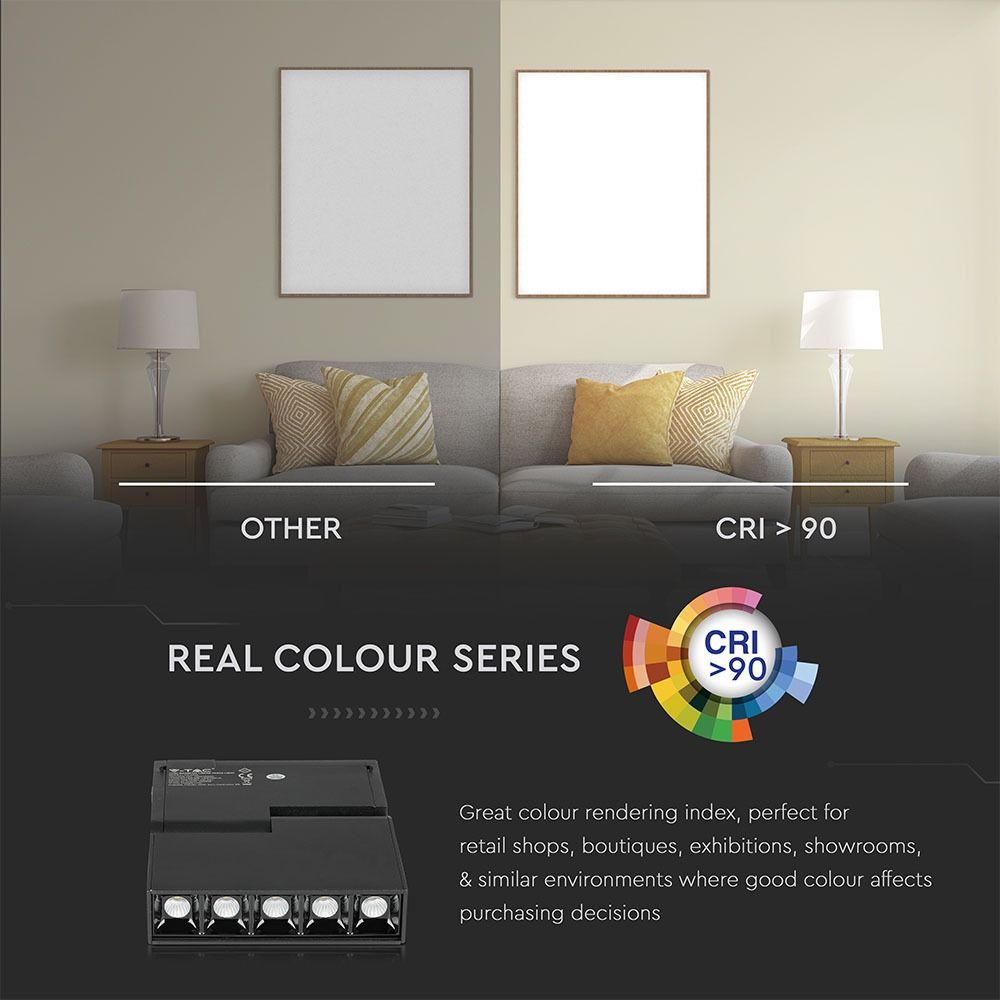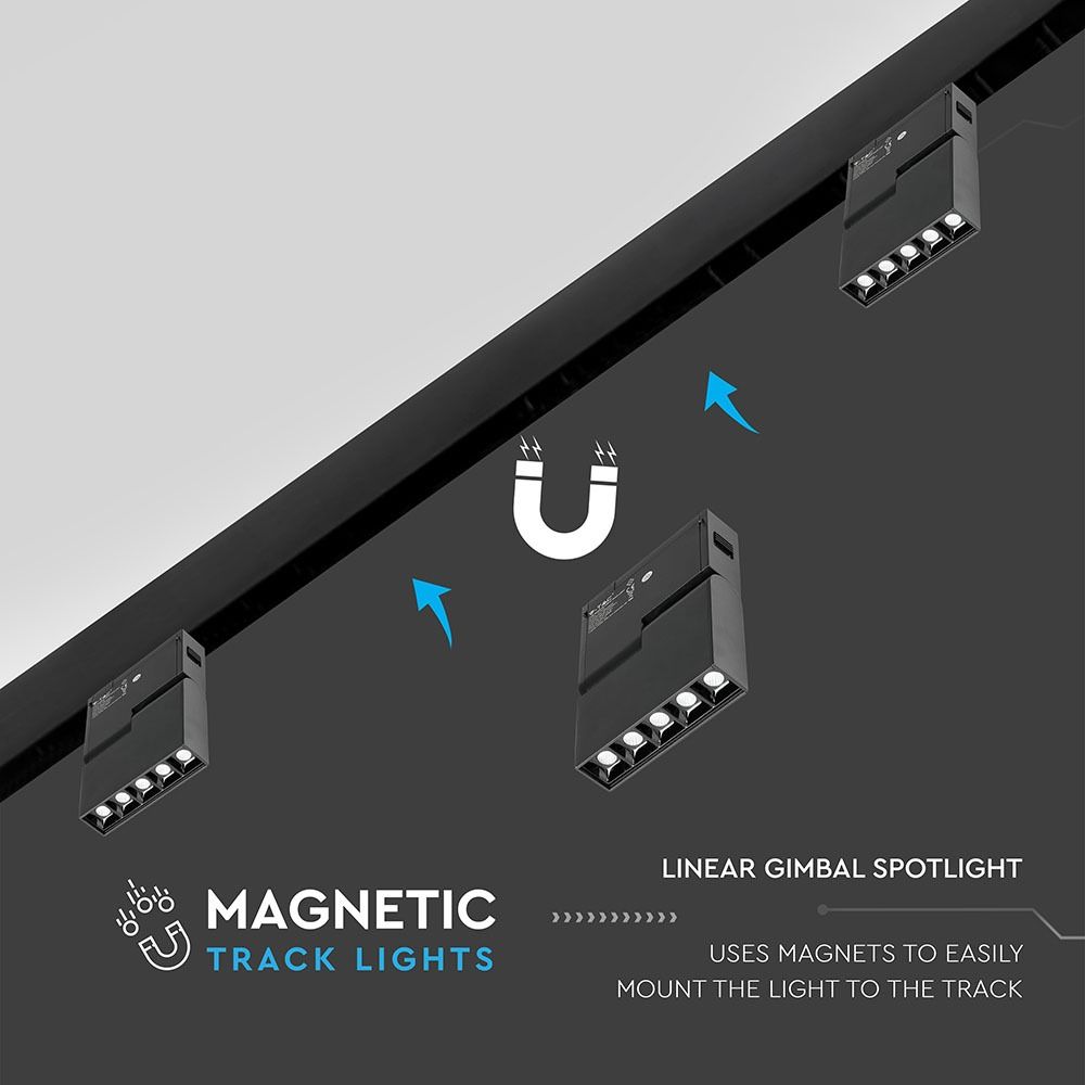 LED Μαγνητικό Φωτιστικό Ράγας 10W V-TAC Μαύρο CRI 90 24V 30° Θερμό 3000K – 7962