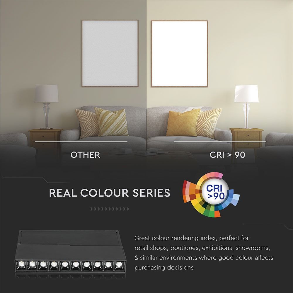 LED Μαγνητικό Φωτιστικό Ράγας 20W V-TAC Μαύρο CRI 90 24V 30° Φυσικό 4000K – 7965