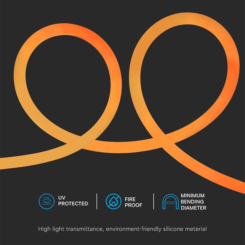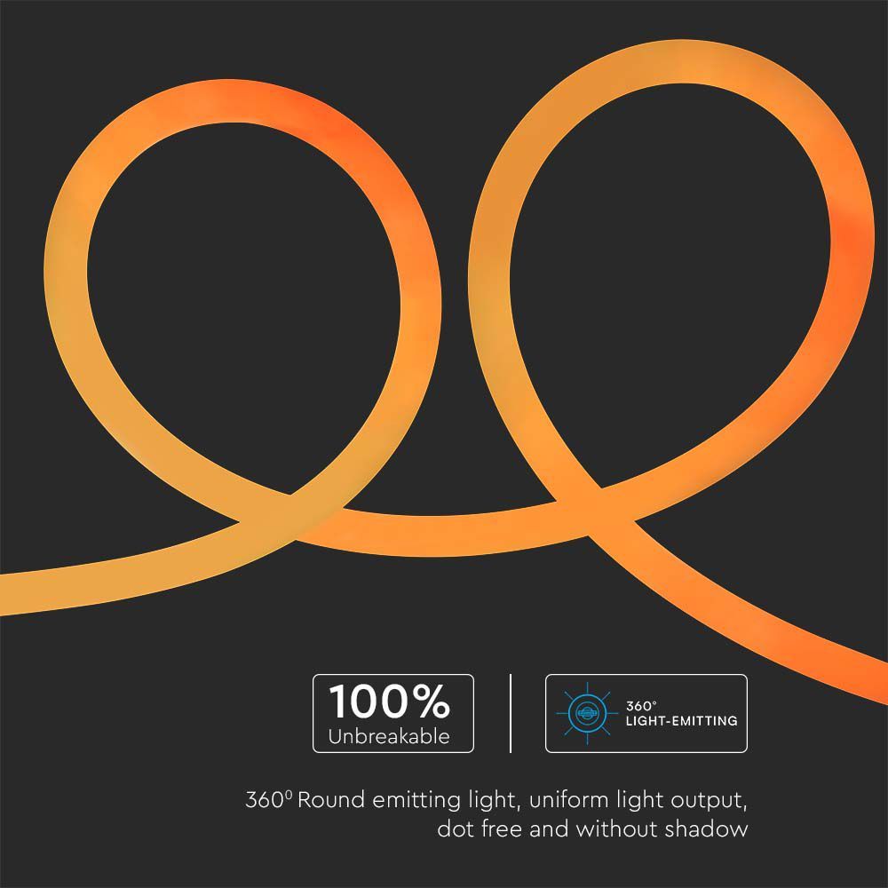 LED Neon Flex 12W V-TAC 24V 360° Amber 10 Μέτρα – 6873