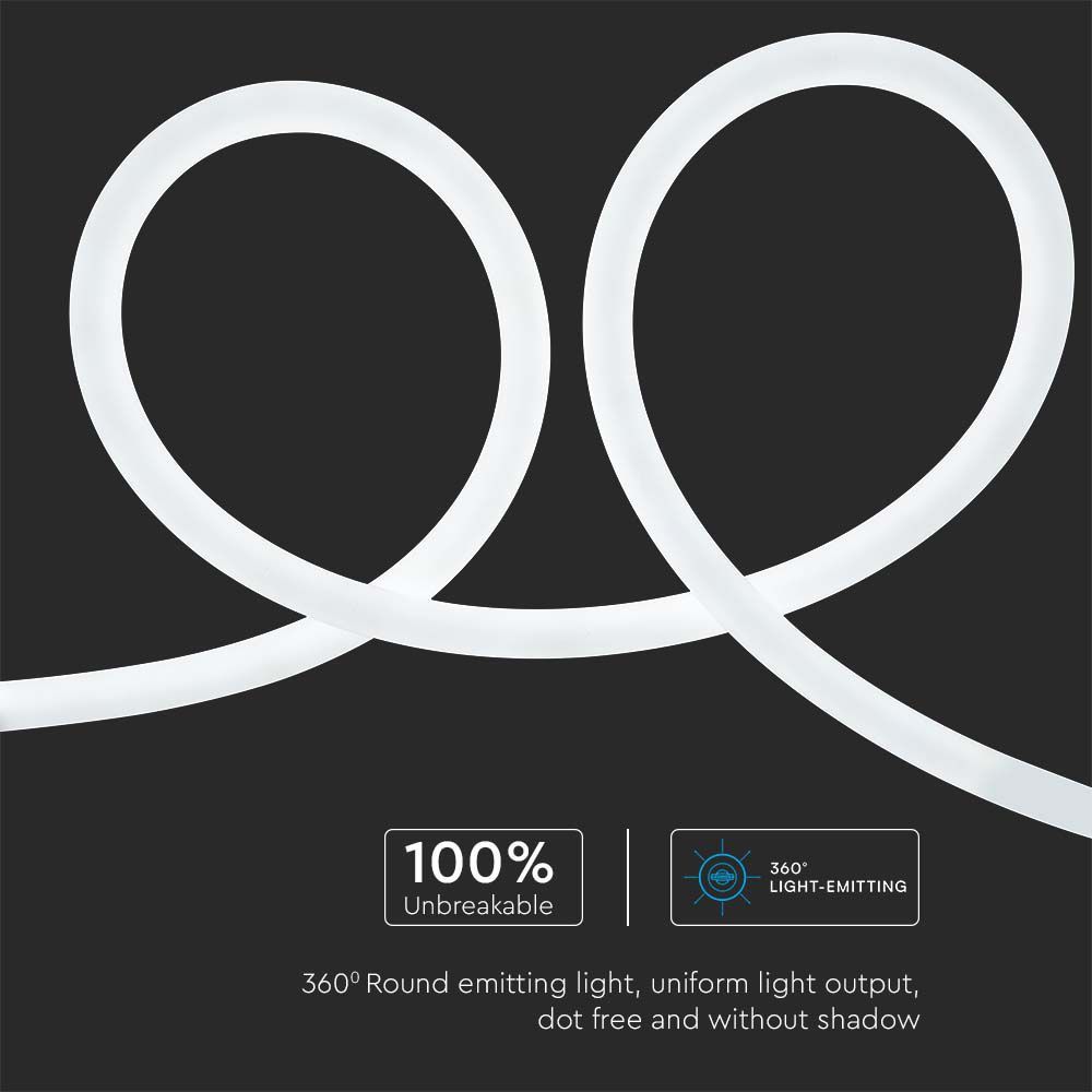 LED Neon Flex 12W V-TAC 24V 360° Ψυχρό Λευκό 6500K 10 Μέτρα – 6870