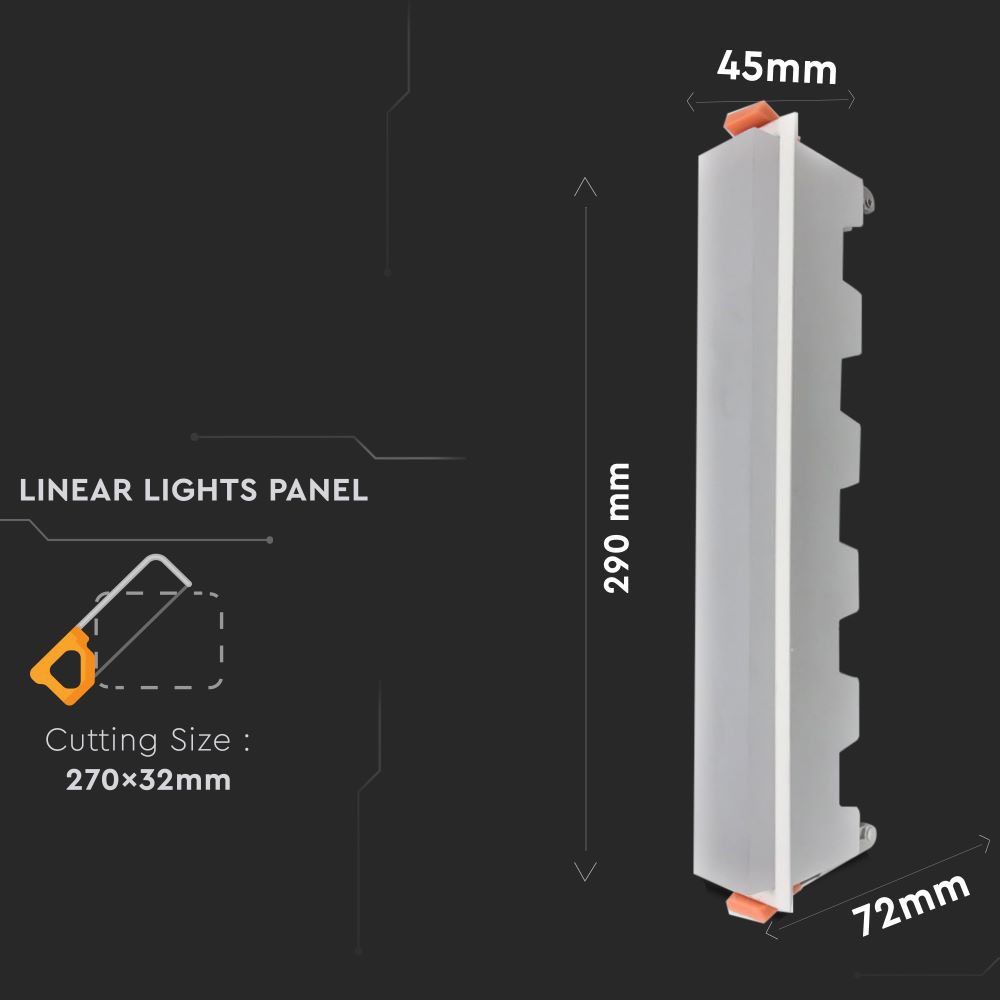 LED Panel Γραμμικό 20W 6400K Ψυχρό Λευκό με Λευκό Σώμα V-TAC 6415