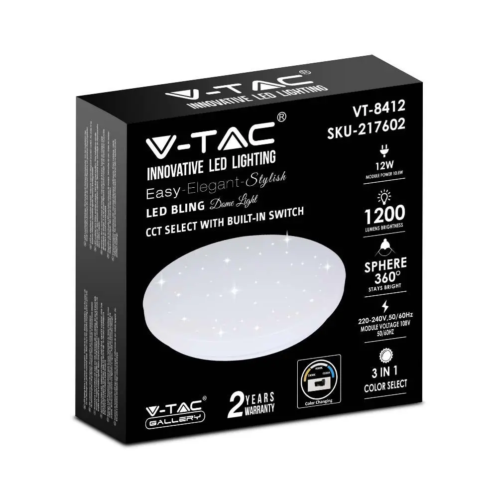 LED πλαφονιέρα 12W στρογγυλή, 3 σε 1 φωτισμός (Ψυχρό, Φυσικό & Θερμό λευκό), σε Λευκό σώμα και έναστρο κάλυμμα V-TAC – 217602