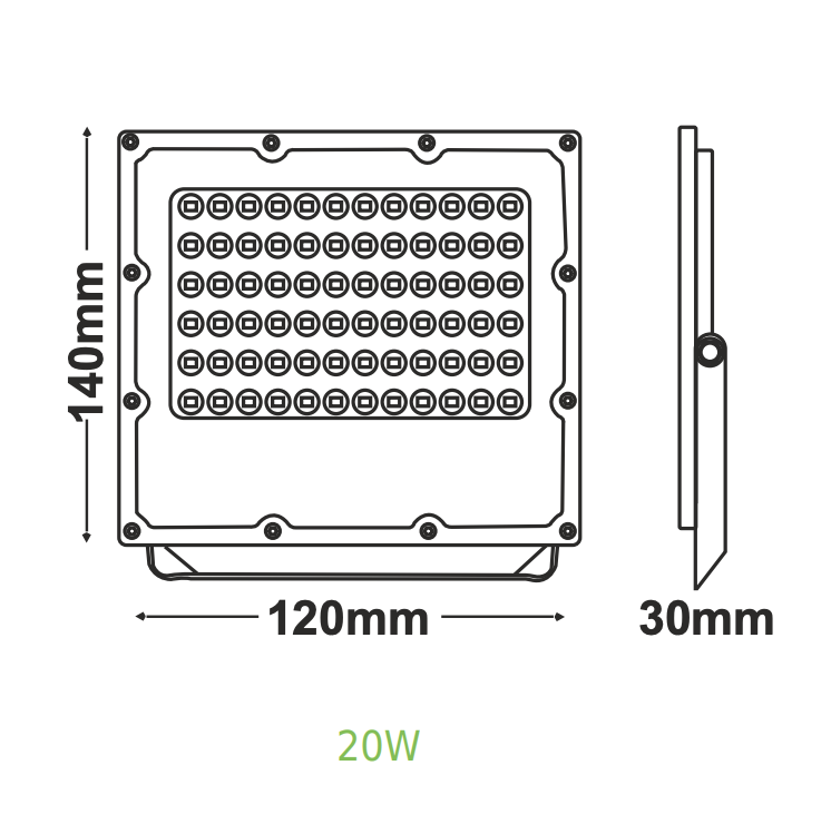 LED Προβολέας 20W ACA Μαύρος 90° 2400lm Αδιάβροχος IP65 100-277V 6000K – J2060