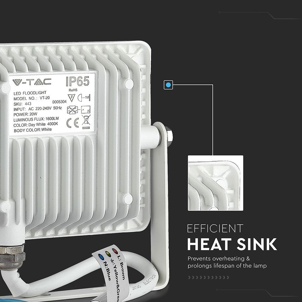 LED Προβολέας 20W V-TAC Samsung Chip Λευκός Αδιάβροχος IP65 Ψυχρό Λευκό 6400K – 444