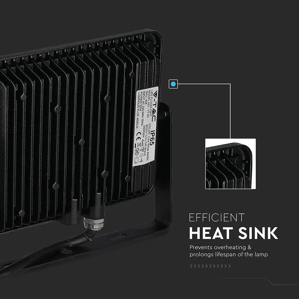 LED Προβολέας 50W V-TAC PRO Samsung Chip 100° 4000lm Μαύρος Αδιάβροχος IP65 Θερμό 3000K – 21406