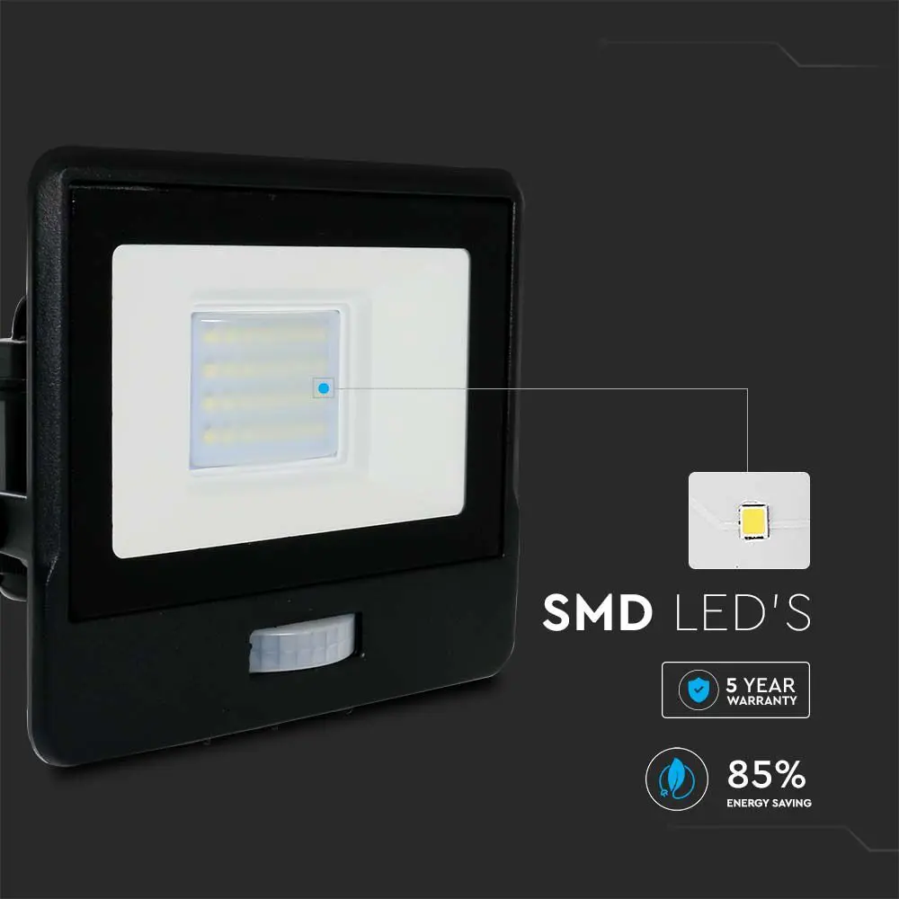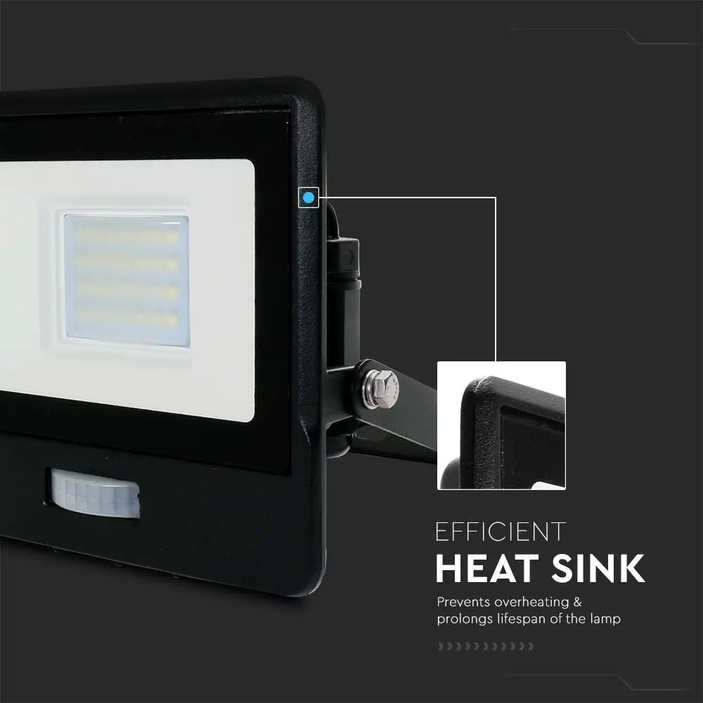 LED Προβολέας με Ανιχνευτή Κίνησης 20W V-TAC PRO Samsung Chip 100° 1510lm Μαύρος IP65 Θερμό 3000K – 20259