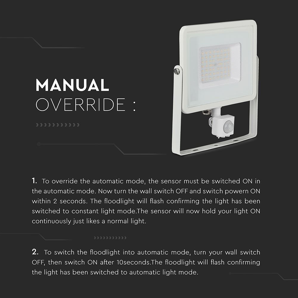 LED Προβολέας με Ανιχνευτή Κίνησης 50W V-TAC PRO Samsung Chip 100° 4000lm Λευκός IP65 Θερμό Λευκό 3000K – 466
