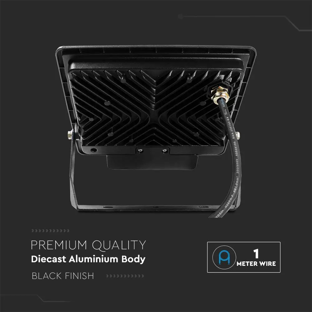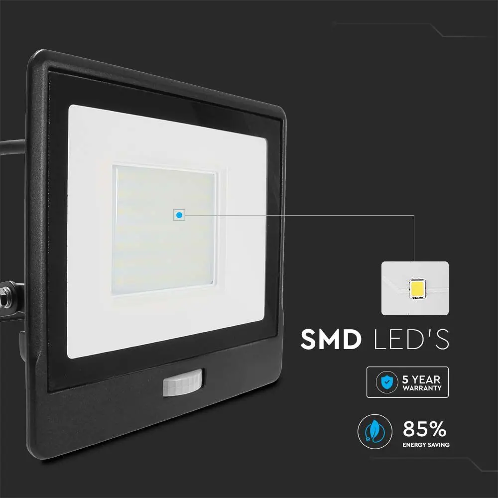 LED Προβολέας με Ανιχνευτή Κίνησης 50W V-TAC PRO Samsung Chip 100° 4000lm Μαύρος με 1m καλώδιο IP65 Ψυχρό 6500K – 20291