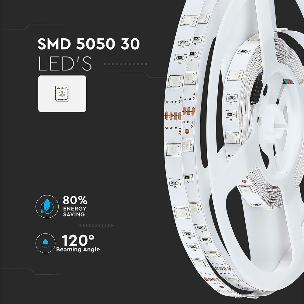 LED Ταινία 6W V-TAC Dimmable 500lm/m Πολύχρωμη RGB 5 Μέτρα – 212124