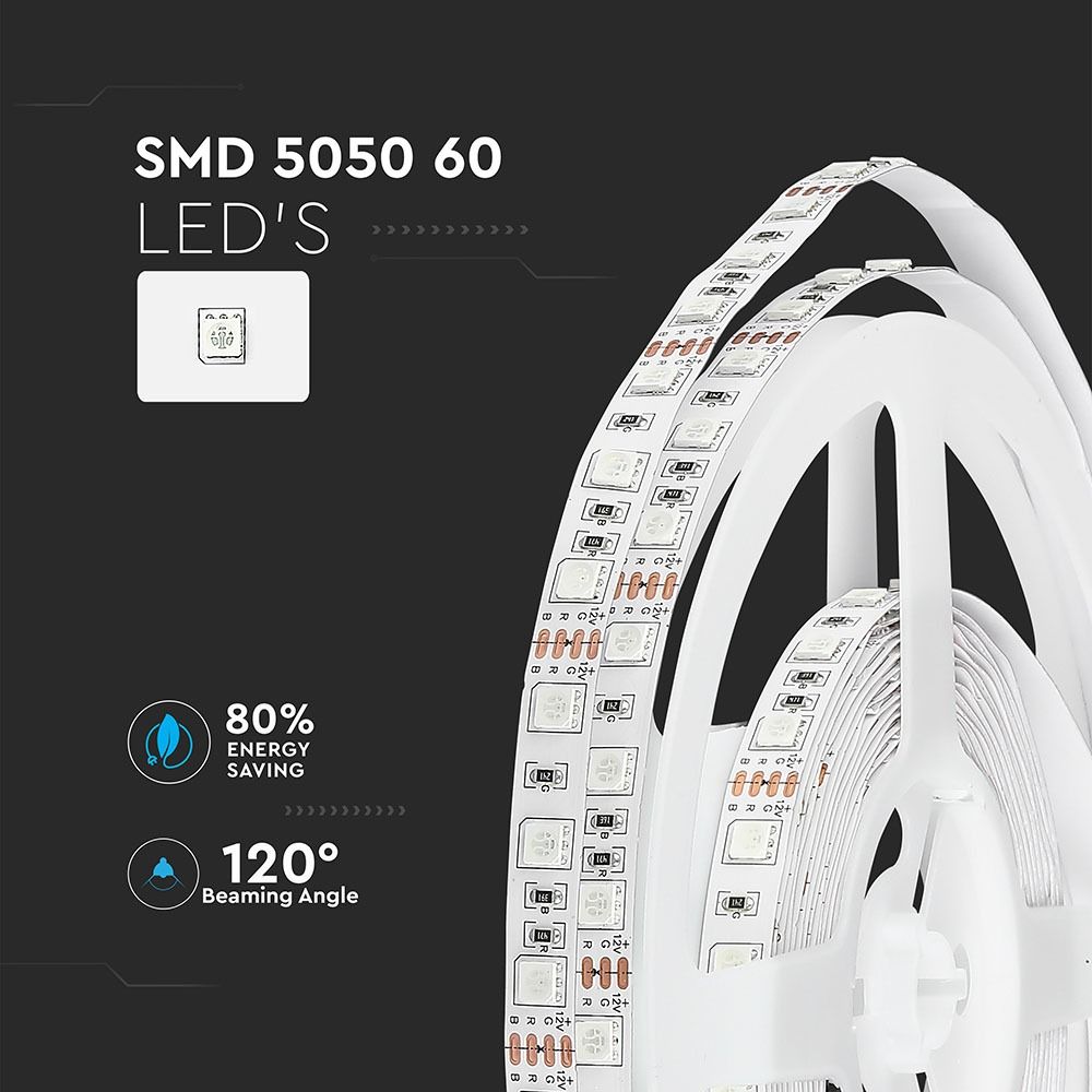 LED Ταινία 7W V-TAC Dimmable 900lm/m Πολύχρωμη RGB 5 Μέτρα – 212120