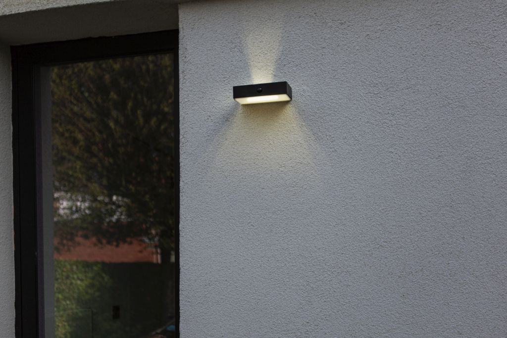 Ηλιακό φωτιστικό τοίχου FADI έχει κομψή και μοντέρνα εμφάνιση. Το επιτοίχιο φωτιστικό διαθέτει έναν αισθητήρα που ανάβει αυτόματα όταν πέσει το σκοτάδι. Μπορεί να χρησιμοποιηθεί ως φωτισμός για φράχτη ή φωτισμός πρόσοψης. Χάρη στη συνδεδεμένη μονάδα, μπορείτε να φωτίσετε τον εξωτερικό σας χώρο πλήρως σύμφωνα με το προσωπικό σας γούστο μέσω της δωρεάν εφαρμογής. Κατά τη διάρκεια της ημέρας η λάμπα θα φορτίζεται μόνη της μέσω του ηλιακού πάνελ, έτσι ώστε το βράδυ να μπορείτε να απολαύσετε το ζεστό λευκό φως στον κήπο σας.