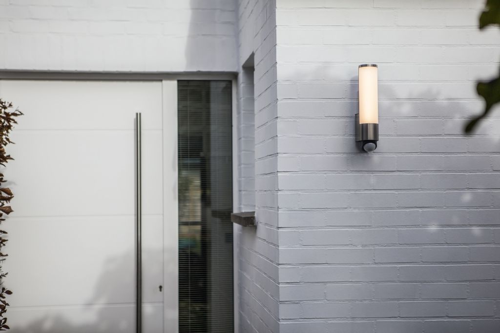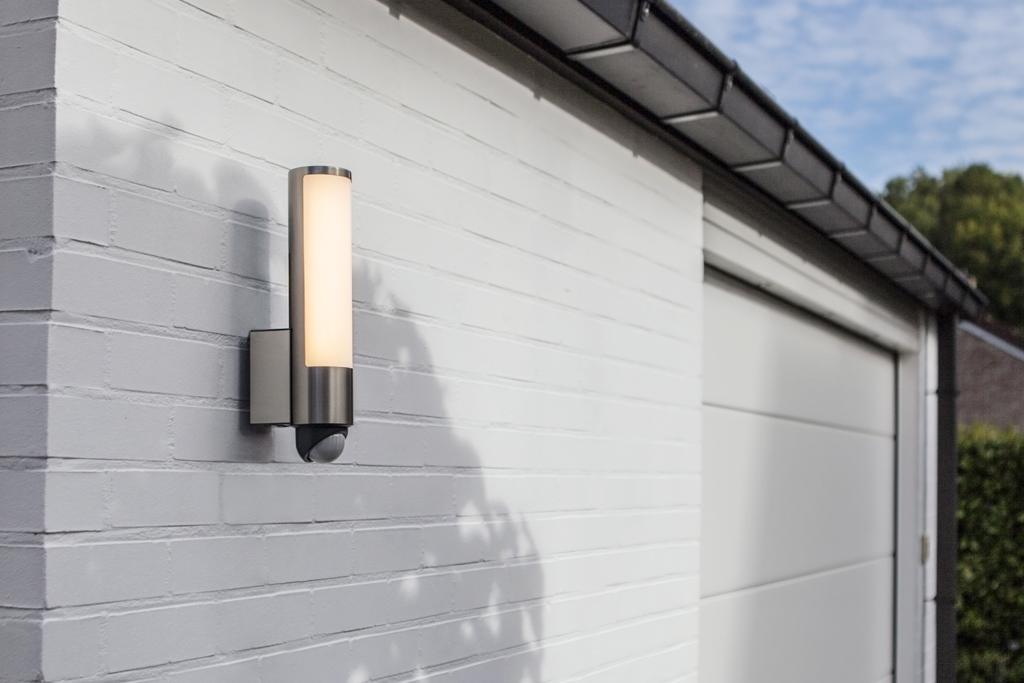 Το φως τοίχου από ανοξείδωτο χάλυβα στη σειρά InMotion περιέχει έναν οριζόντιο και κάθετα ρυθμιζόμενο αισθητήρα κίνησης. Χάρη στον ενσωματωμένο αισθητήρα, το φως θα ανάψει αυτόματα μόλις πλησιάσετε.