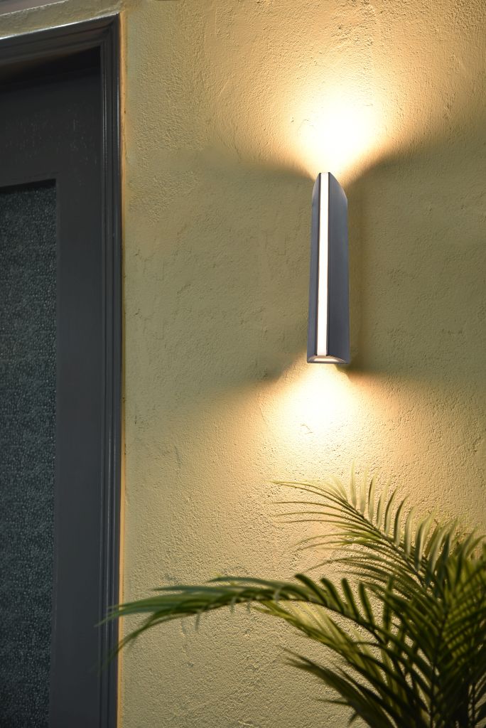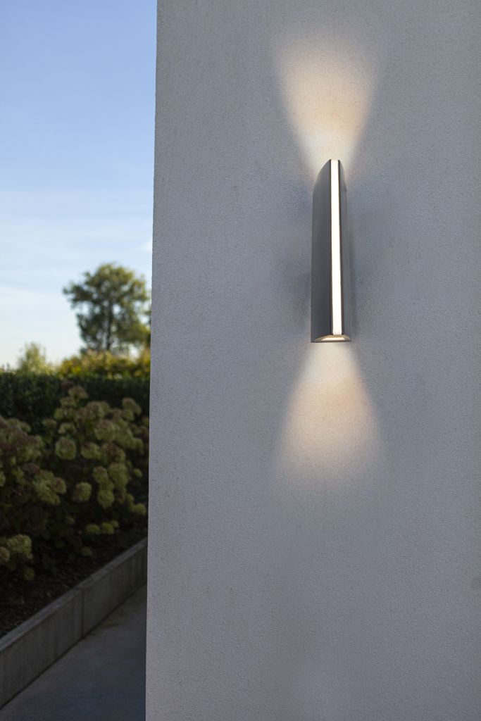 Το απλό αλλά εντυπωσιακό φωτιστικό τοίχου LEO. Διαθέτει ισχυρή δέσμη φωτός πάνω και κάτω και κάθετη λωρίδα φωτός οπαλίου μπροστά. Ο οπτικός αντίκτυπος αυτού του εκπληκτικού σύγχρονου εξάρτημα LED είναι ιδιαίτερα εντυπωσιακός όταν τοποθετούνται πολλαπλά φώτα σε διάταξη.