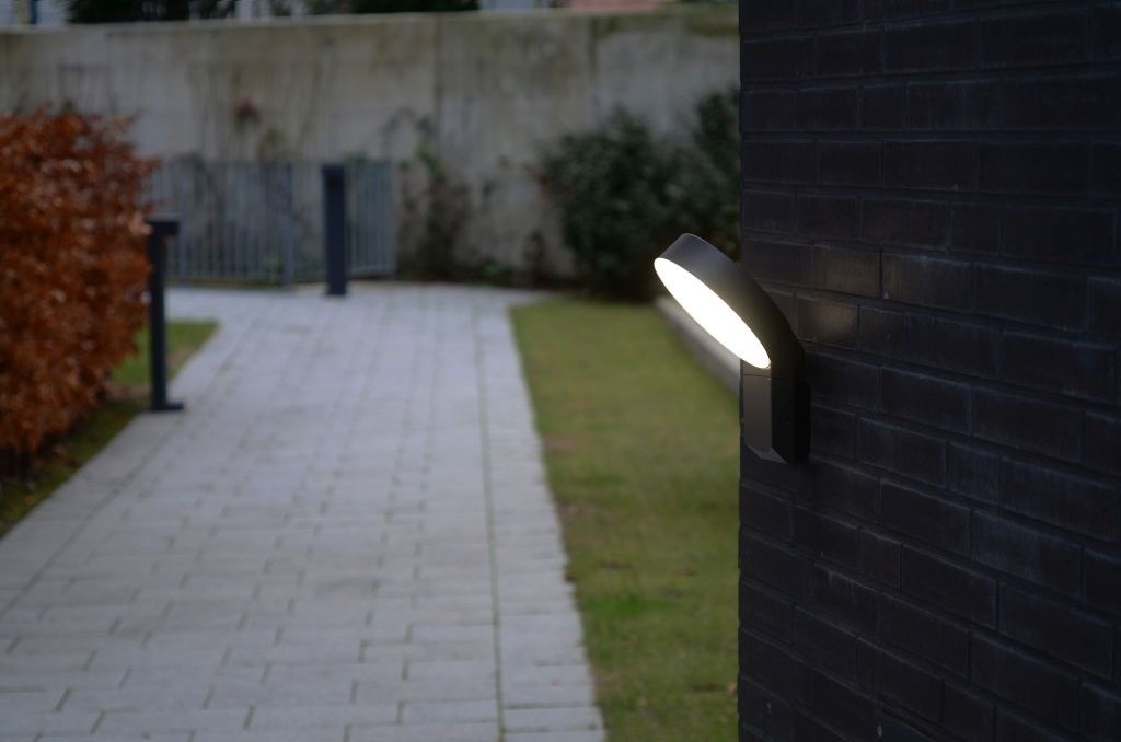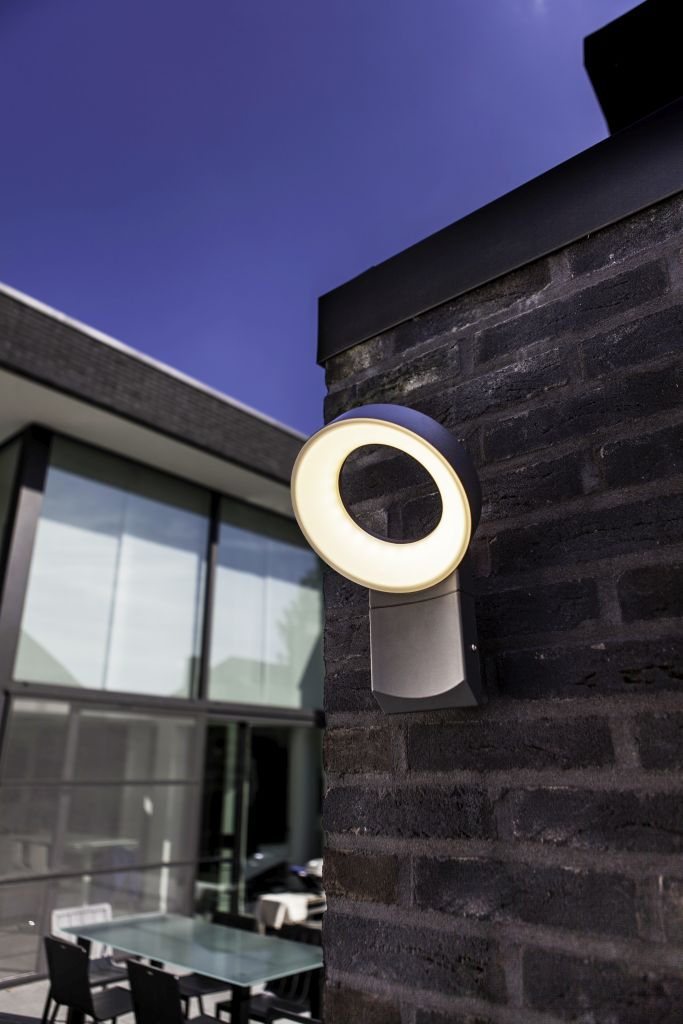 Κομψός συνδυασμός σώματος από γκρι ανθρακί αλουμινίου και διαχύτη πολυανθρακικού λευκού οπαλίου. Αυτό το φωτιστικό τοίχου μικρού μεγέθους δίνει ένα ισχυρό διάχυτο φως 800 lumen και μια σχεδιαστική δήλωση στον κήπο σας.