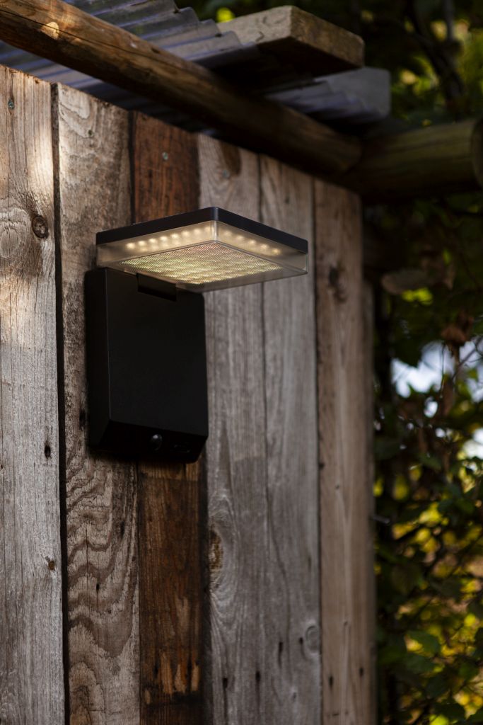 Με κομψό σχεδιασμό, το επιτοίχιο φωτιστικό MOZE με ηλιακό πάνελ και ανιχνευτή κίνησης δεν είναι μόνο λειτουργικό, αλλά και μια απόλαυση για το μάτι – κατά τη διάρκεια της ημέρας και το βράδυ. Ο ενσωματωμένος αισθητήρας κίνησης σας εξασφαλίζει ένα φιλόξενο φως. Το ενσωματωμένο LED το καθιστά ιδανικό για να φωτίζει ένα μονοπάτι, αλλά και να δημιουργεί τη σωστή διάθεση στη βεράντα σας.