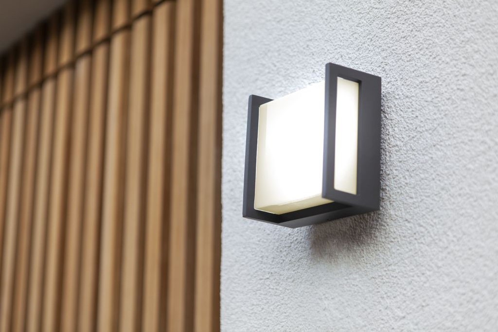 Lutec Qubo Square Φωτιστικό Τοίχου Εξωτερικού Χώρου Σκούρο Γκρι LED 650lm 3000K IP54 – 5195401118