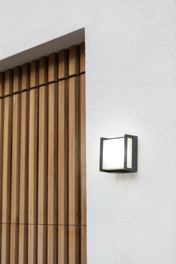 Μοντέρνο μικρό εξωτερικό φωτιστικό τοίχου που δημιουργεί μια εκπληκτική ατμόσφαιρα ενώ κάνει μια αρχιτεκτονική δήλωση. Ιδανικό για γενικό φωτισμό στον κήπο ή στη βεράντα σας.