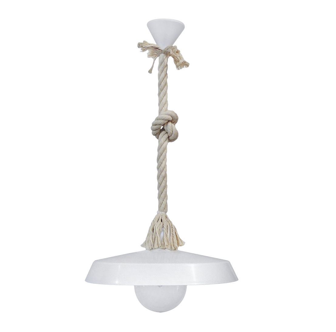 Φωτιστικό χειροποίητο μονόφωτο μακραμέ πλαστικό Φ37 λευκό ,κρεμαστό