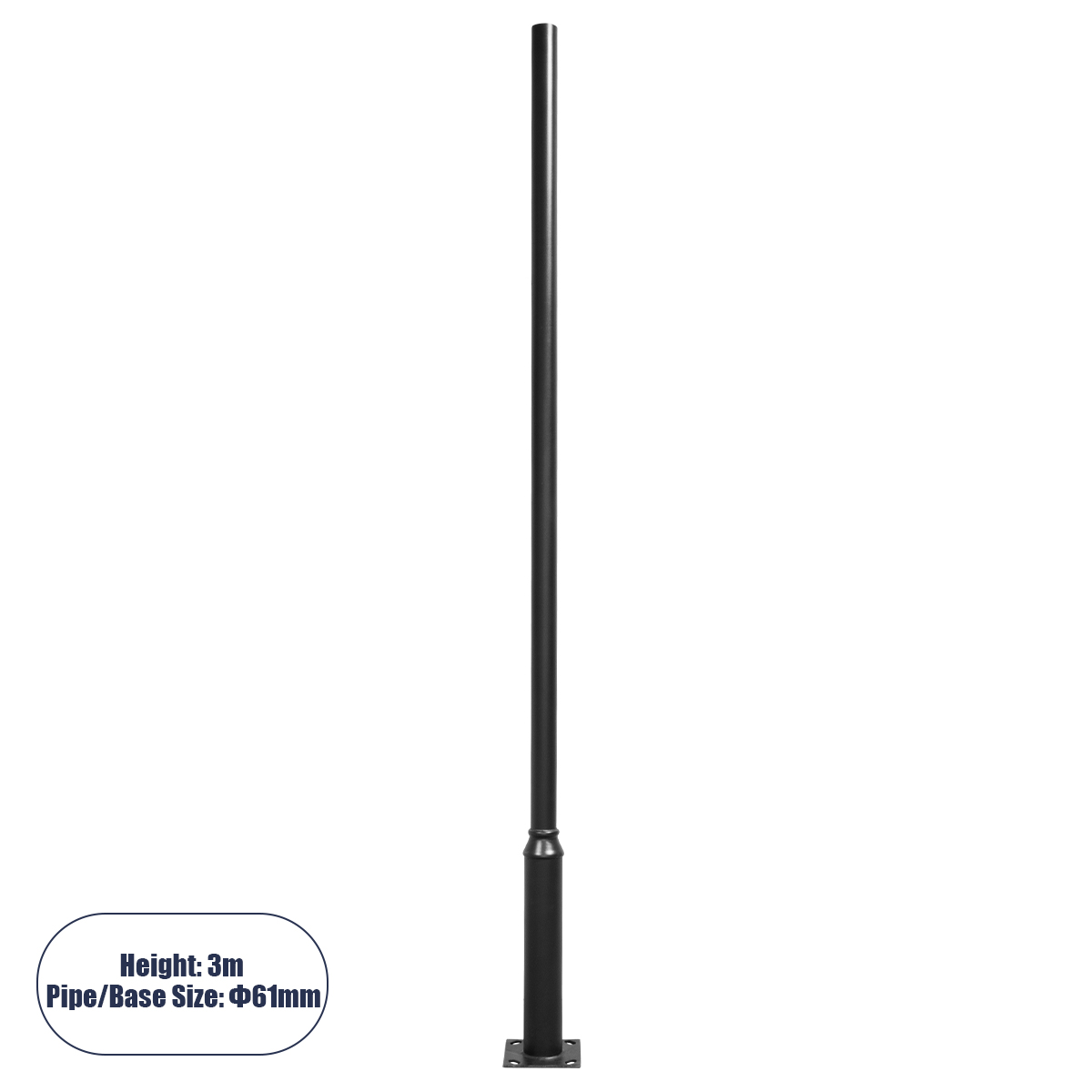Μεταλλικός Στύλος – Ιστός – Κολώνα σε Μαύρο Χρώμα για Φωτιστικά Δρόμου και Πλατείας Ύψος 3 Μέτρα Φ6.1cm GloboStar 12111