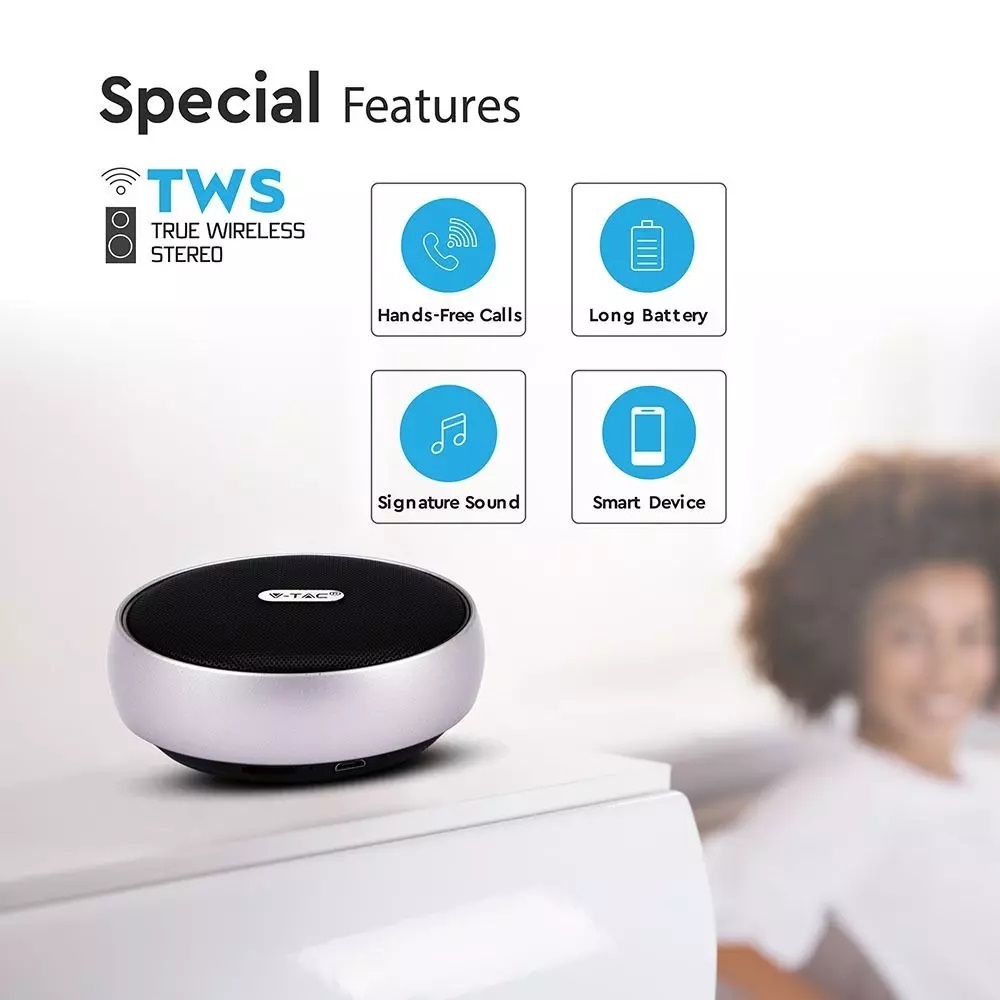 Mini Φορητό Ασύρματο Ηχείο 4W με Μικρόφωνο V-TAC Bluetooth Γκρι – 7717