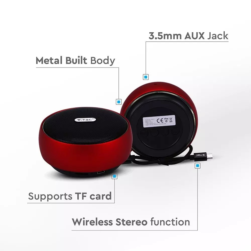 Mini Φορητό Ασύρματο Ηχείο 4W με Μικρόφωνο V-TAC Bluetooth Κόκκινο – 7716