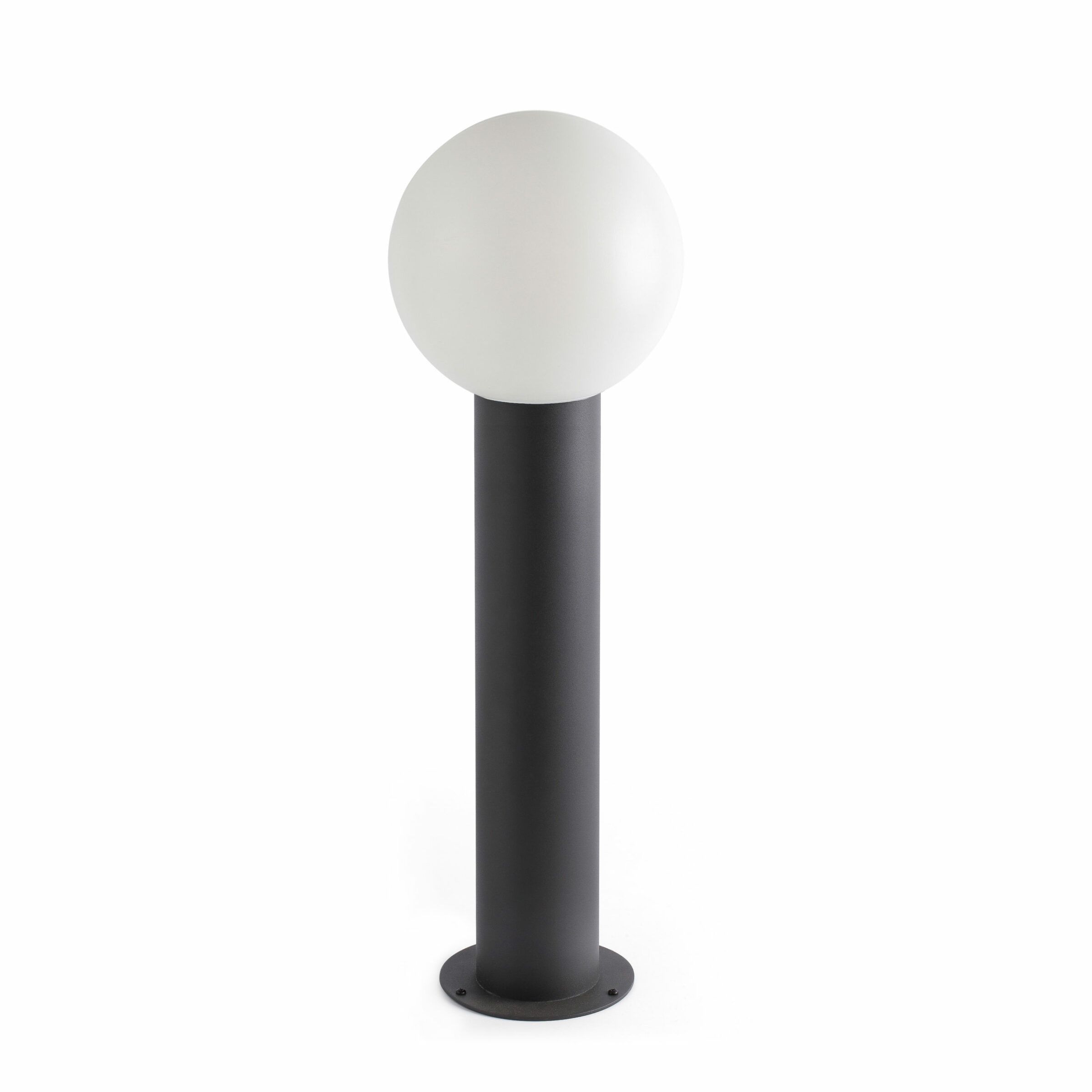 MOON is a post lamp with a modern style for outdoor lighting, made of aluminium and opal polycarbonate. 61cm version.