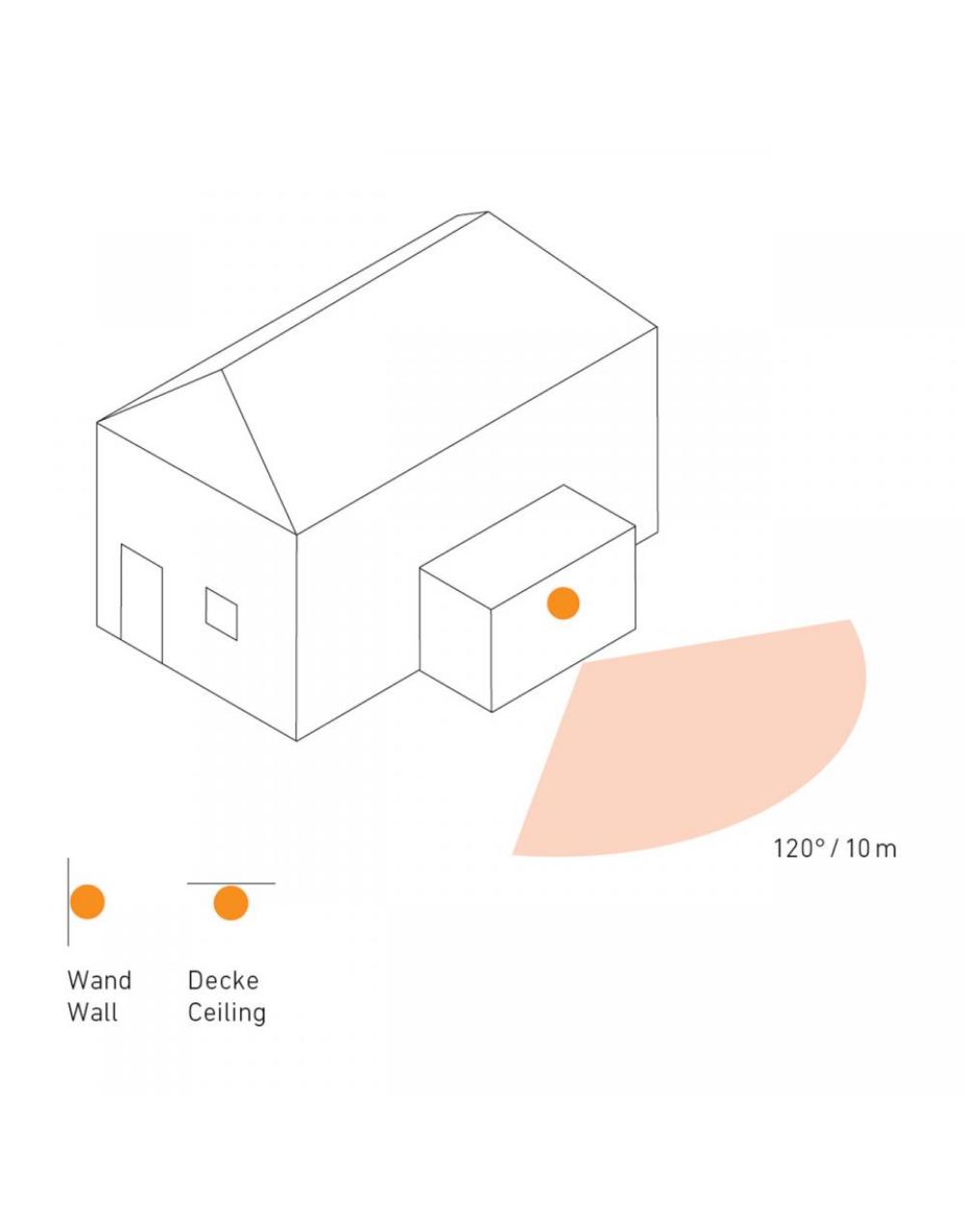 Για τοποθέτηση σε τοίχο ή οροφή, κατάλληλος για εσωτερικούς και εξωτερικούς χώρους (IP 45), ιδανικός για στοχευμένη ανίχνευση μικρών περιοχών