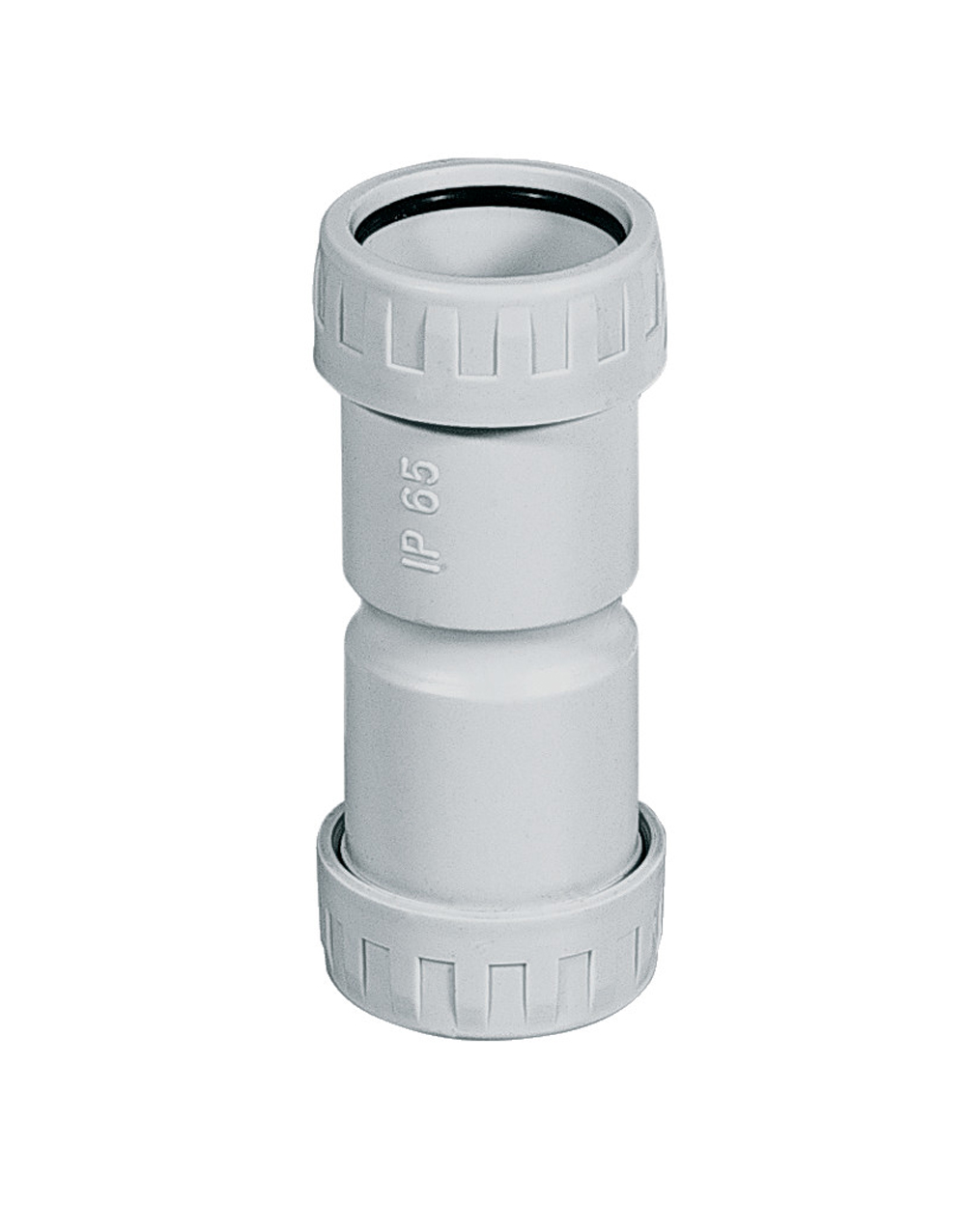 Σύνδεση σωλήνας Φ20 ευθεία σε γκρι χρώμα από PVC. Είναι ανθεκτικό σε υψηλή θερμότητα. Ο βαθμός στεγανότητας είναι IP65.