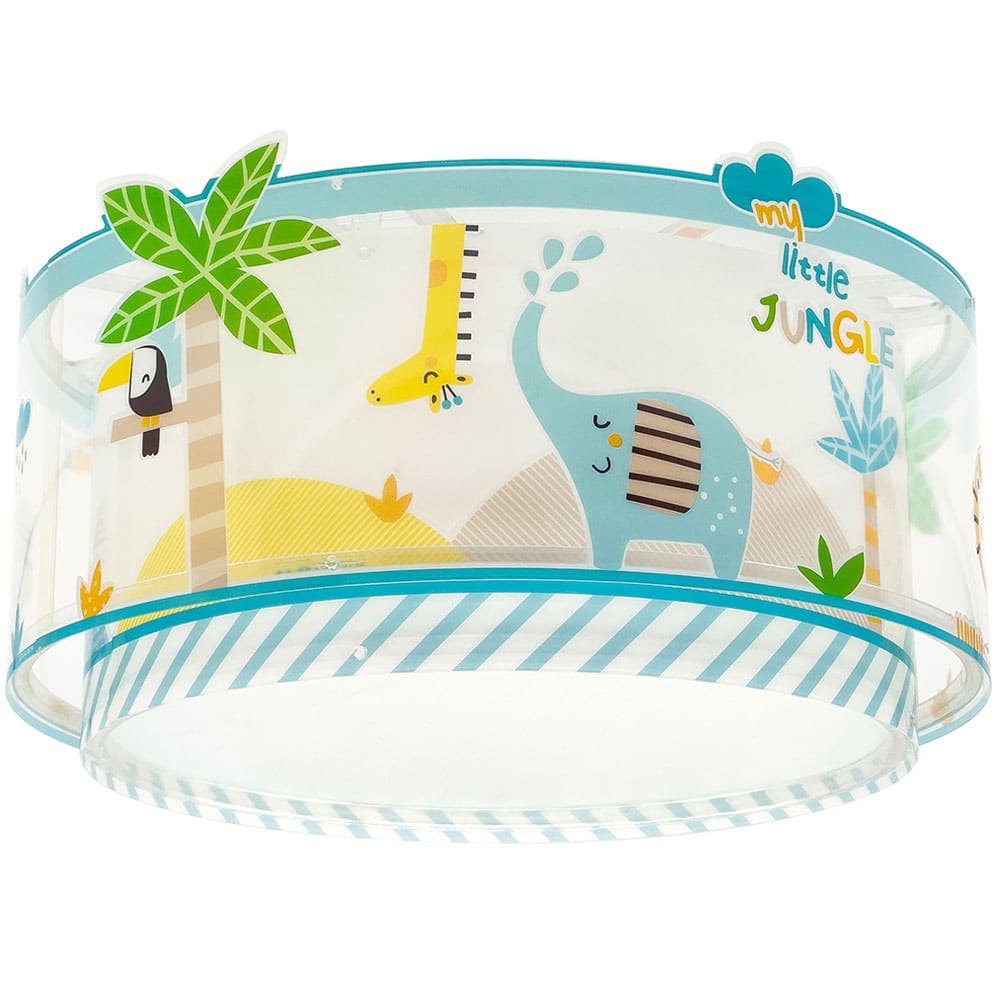 Παιδικό φωτιστικό οροφής τύπου πλαφονιέρα κατάλληλο για γενικό φωτισμό και όλες τις δραστηριότητες των παιδιών με θέμα τα ζώα της ζούγκλας. Είναι διπλού τοιχώματος από άκαυστο λεπτό πολυπροπυλένιο και φωσφορίζοντα στο σκοτάδι εξωτερικά μέρη. Τοποθετείται εύκολα και γρήγορα και είναι εφοδιασμένο με δύο θέσεις λαμπτήρων LED για πραγματικά άπλετο φως στο δωμάτιο. Παρέχεται διαχυτής φωτός για τις μικρότερες ηλικίες που προσφέρει ομοιόμορφο φωτισμό αλλά και προστασία. Κατασκευασμένο εξ ολοκλήρου στην Ευρώπη το My Little Jungle πλαφονιέρα οροφής, συμπληρώνει τα υπόλοιπα παιδικά φωτιστικά της συλλογής κομοδίνου, απλίκα ή νυκτός.