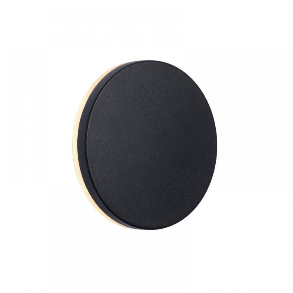 Επίτοιχο φωτιστικό απλίκα εξωτερικού χώρου σε σχήμα κυκλικό από αλουμίνιο σε χρώμα μαύρο και λευκό οπάλ γυαλί. Διαθέτει ενσωματωμένο LED με ισχύ 8W με απόδοση 468 Lumen σε θερμό λευκό χρώμα 3000Κ.
