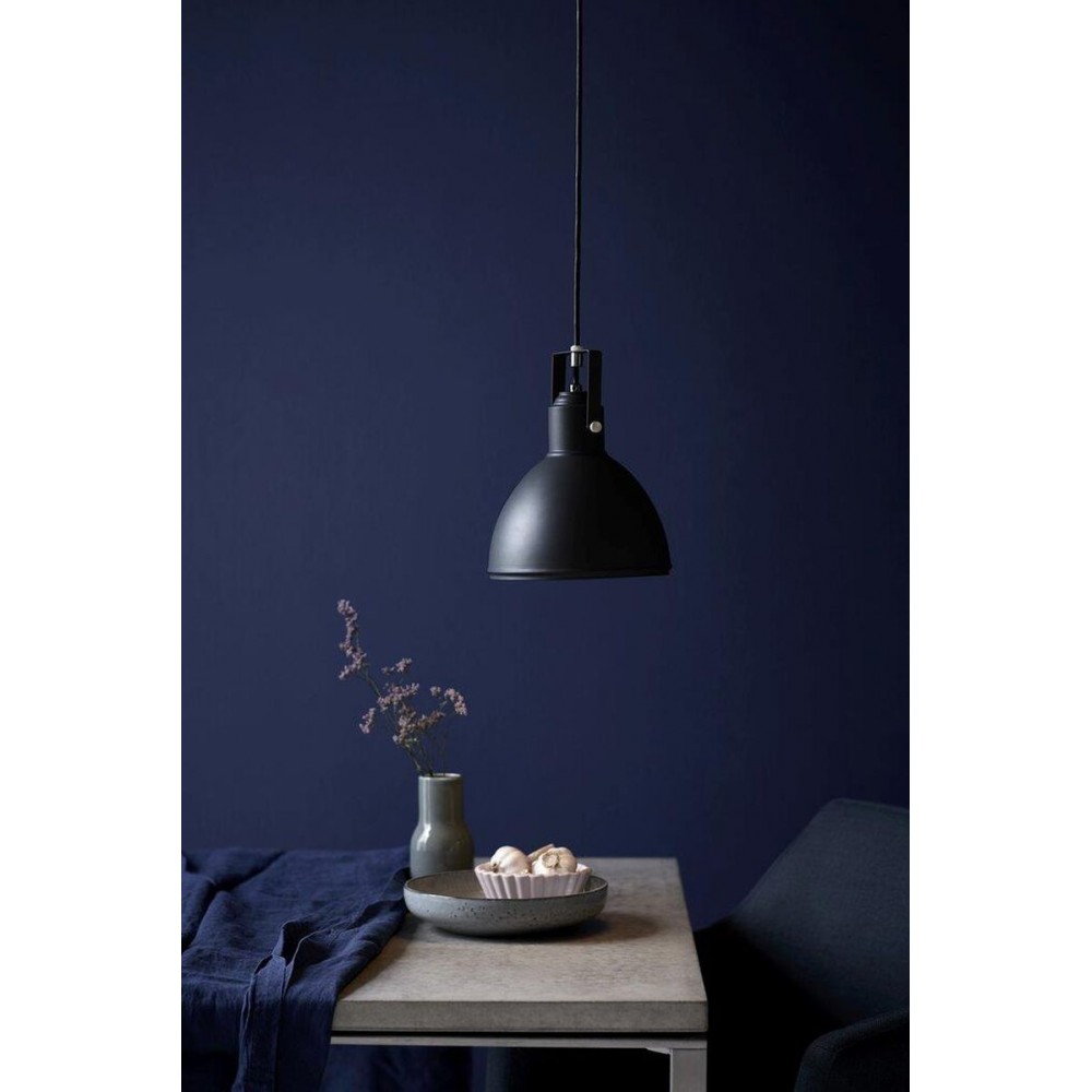 Κρεμαστό φωτιστικό οροφής μονόφωτο από μέταλλο σε χρώμα μαύρο. Διαθέτει καλώδιο σε χρώμα μαύρο και μήκος 300εκ. Δέχεται ένα λαμπτήρα LED Ε27 με ισχύ έως 15W.
