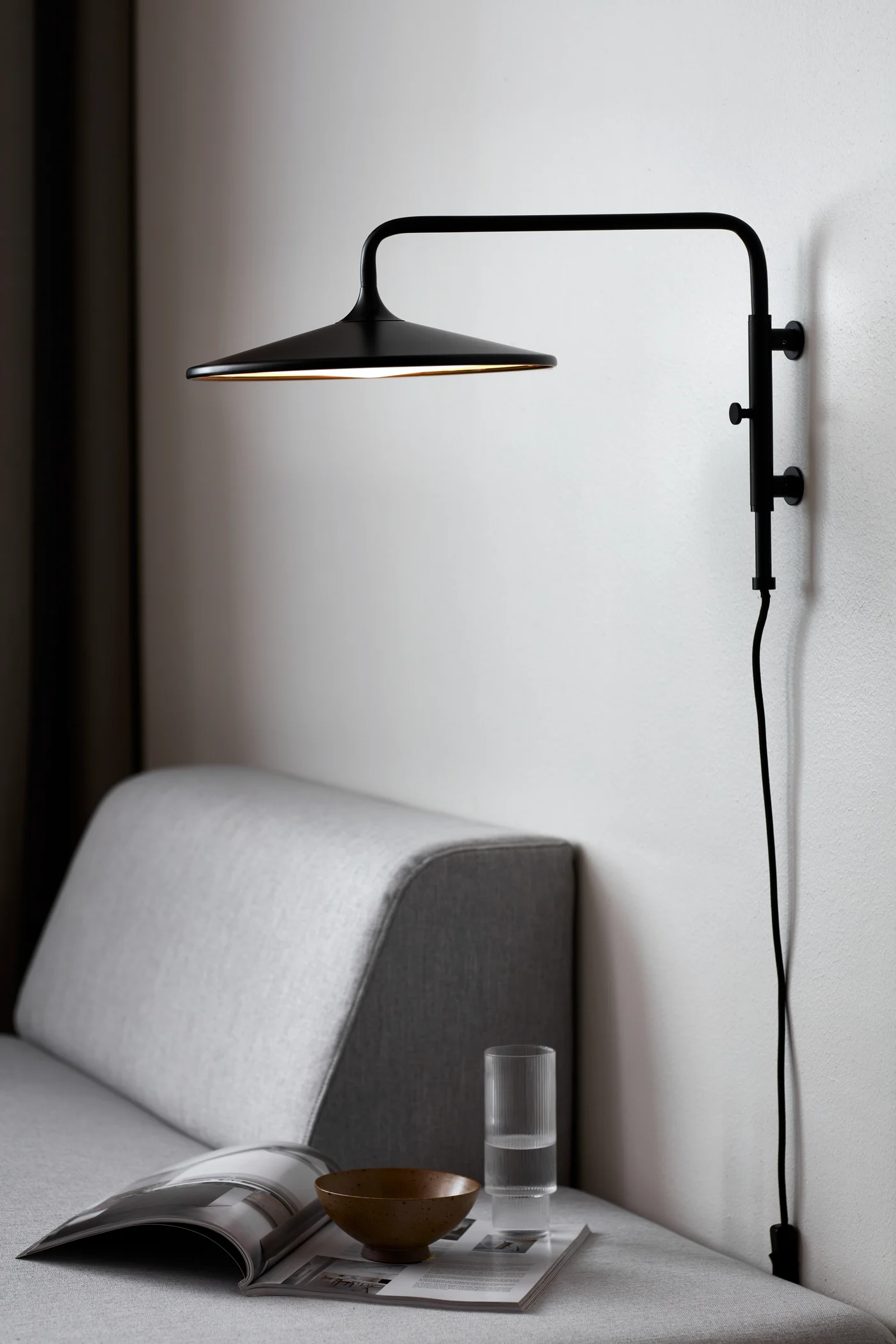 Επίτοιχο φωτιστικό απλίκα από μέταλλο και ακρυλικό σε χρώμα μαύρο. Διαθέτει καλώδιο σε χρώμα μαύρο με μήκος 150εκ. Διαθέτει ενσωματωμένο LED με ισχύ 17,5W και απόδοση 1200 Lumen σε θερμό λευκό χρώμα 2700Κ.
