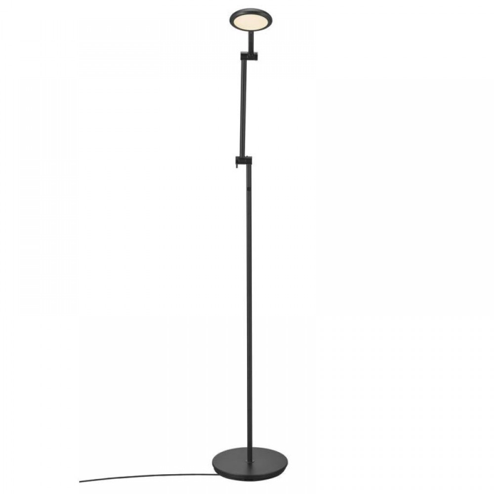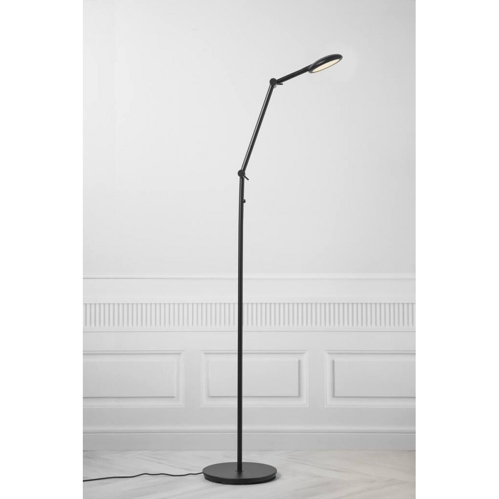 Επιδαπέδιο φωτιστικό μονόφωτο από μέταλλο και αλουμίνιο σε χρώμα μαύρο με δυνατότητα κλίσης του βραχίονα. Διαθέτει καλώδιο σε χρώμα μαύρο και μήκος 150εκ. Διαθέτει ενσωματωμένο LED με ισχύ 5W και απόδοση 410 Lumen σε θερμό λευκό χρώμα 2700Κ.