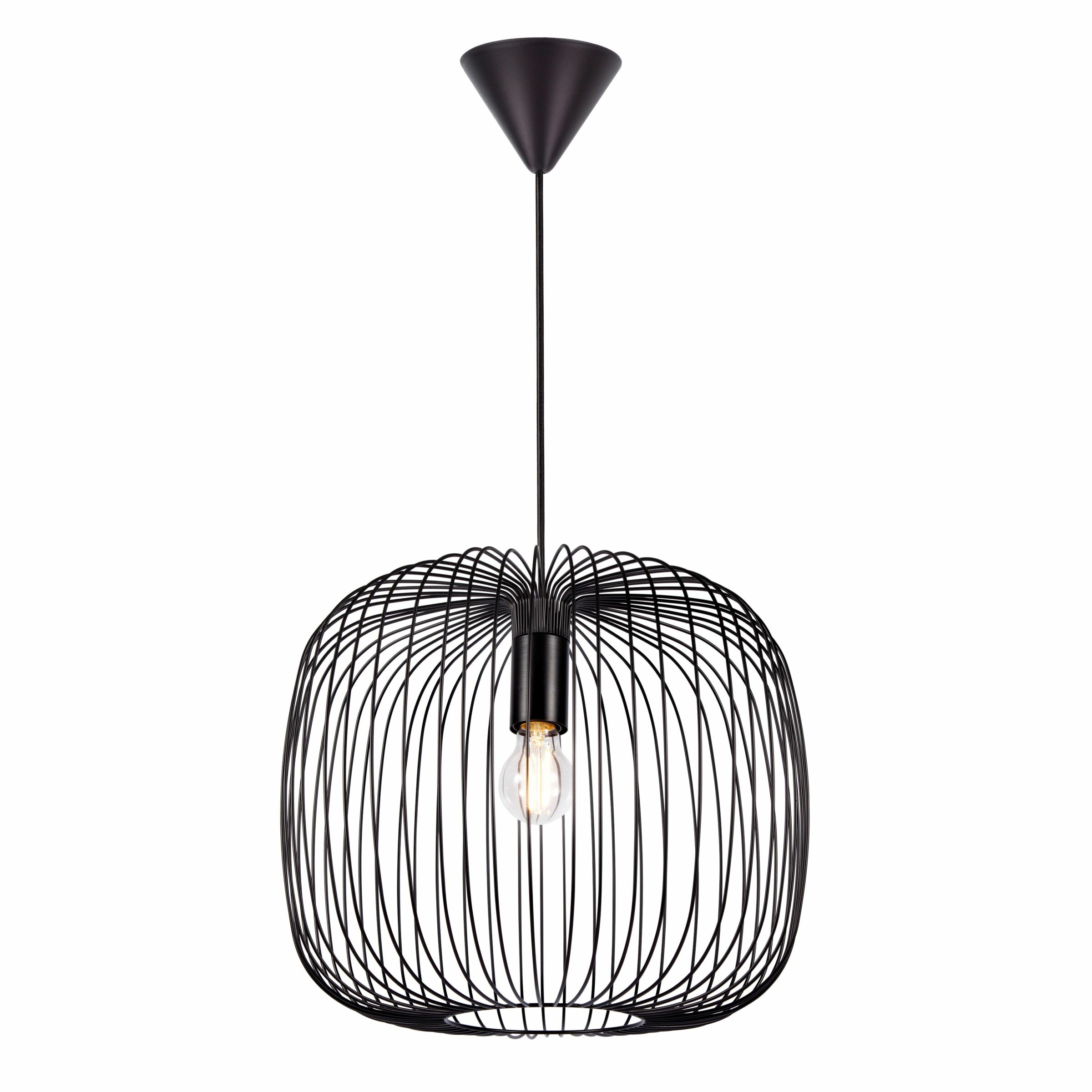 Το κρεμαστό φωτιστικό Beroni έχει έναν ξεχωριστό και μινιμαλιστικό σχεδιασμό που δίνει ένα συναρπαστικό παιχνίδι φωτός και σκιάς όταν είναι ενεργοποιημένο. Τα κυρτά μεταλλικά σύρματα δημιουργούν μια ανοιχτή και ευάερη εμφάνιση, όπου μπορείτε να δημιουργήσετε τη δική σας σχεδιαστική έκφραση προσθέτοντας μια διακοσμητική λάμπα.