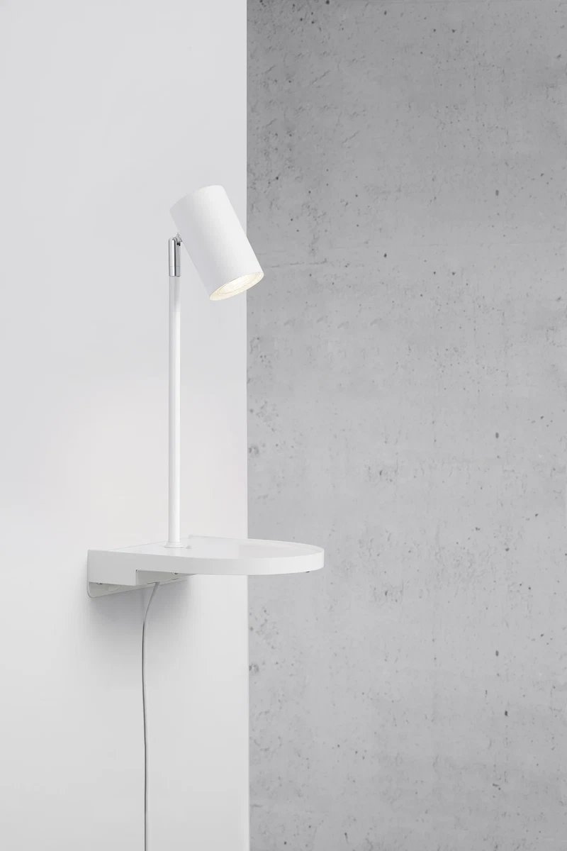Το ενσωματωμένο μικρό ράφι προσφέρει έξτρα χώρο για να τοποθετείς απαραίτητα αντικείμενα, ενώ η ρυθμιζόμενη κεφαλή φωτισμού επιτρέπει στο φως να κατευθύνεται εκεί που το χρειάζεσαι περισσότερο. Με βάση GU10 (λαμπτήρας όχι συμπεριλαμβανόμενος) και μέγιστη ισχύ 15 W, μπορείς να χρησιμοποιήσεις υψηλής απόδοσης LED λαμπτήρες για οικονομικό και καθαρό φωτισμό.